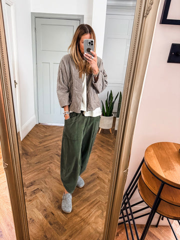 We love our Pocket Cord Balloon Trousers for their unbeatable combination of comfort and style. The soft cotton fabric and elasticated waist provide all-day ease, while the wide-leg design keeps your look fresh and fashionable. Perfect for dressing up or down, these trousers are a versatile addition to any wardrobe.