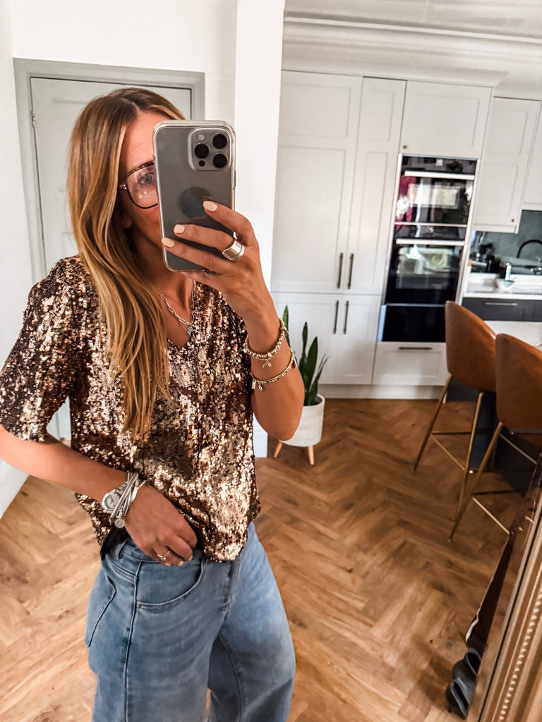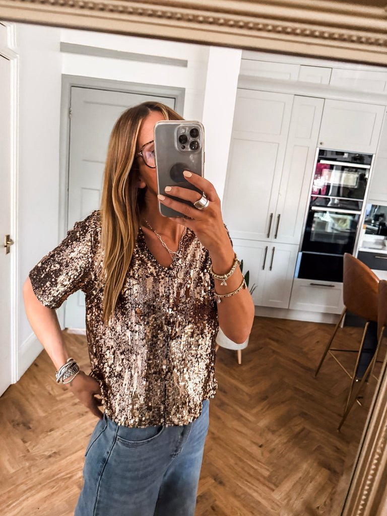 Shine in this V Neck Sequin Top , designed to catch every eye. With short sleeves, fully lined and a flattering V neckline, it blends comfort with bold style. Perfect for nights out, festivals, or any moment you want to make a statement.