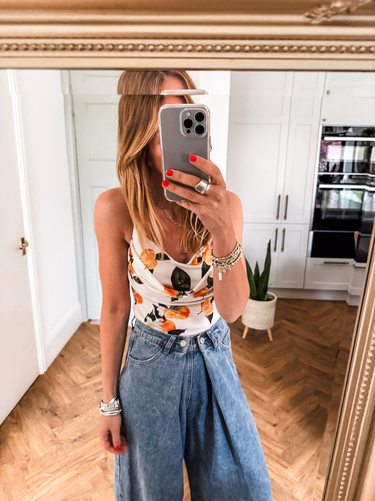 This is gorgeous!! Make a statement in our Orange Bodysuit, featuring playful cowl strappy detail and built-in bra cups for extra support. The vibrant citrus print flatters every skin tone, while the thong cut and elasticated back offer a sleek, comfortable fit. Bold, fun, and made to move with you.