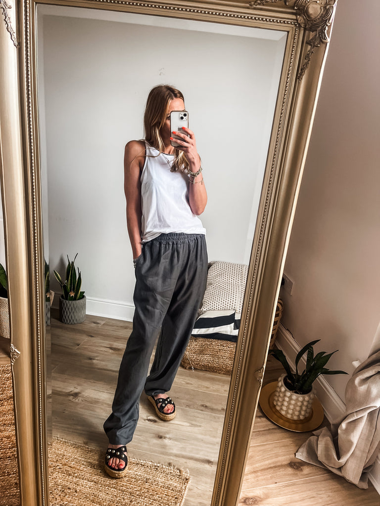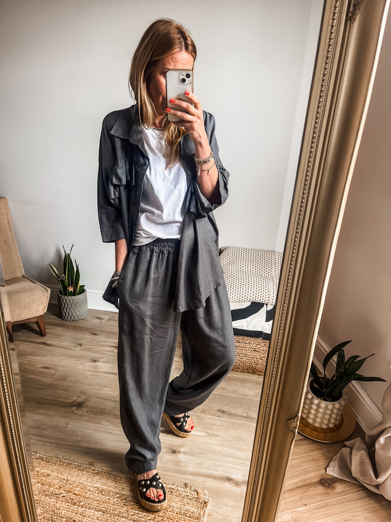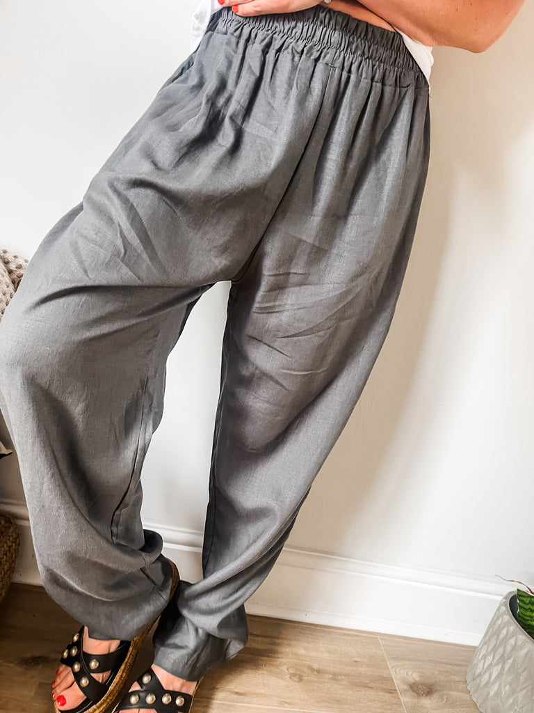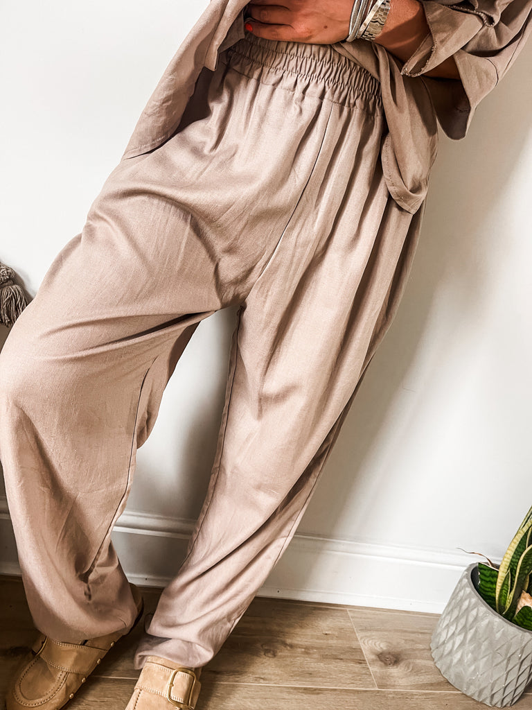 Stay cool and stylish this summer with our Linen Blend Tapered Trousers. The elasticated waistband and lightweight linen blend material make them an essential addition to your wardrobe. With a relaxed fit and tapered leg, these trousers offer both comfort and classic style. Complete the look with our matching Linen Blend Frill Shirt.