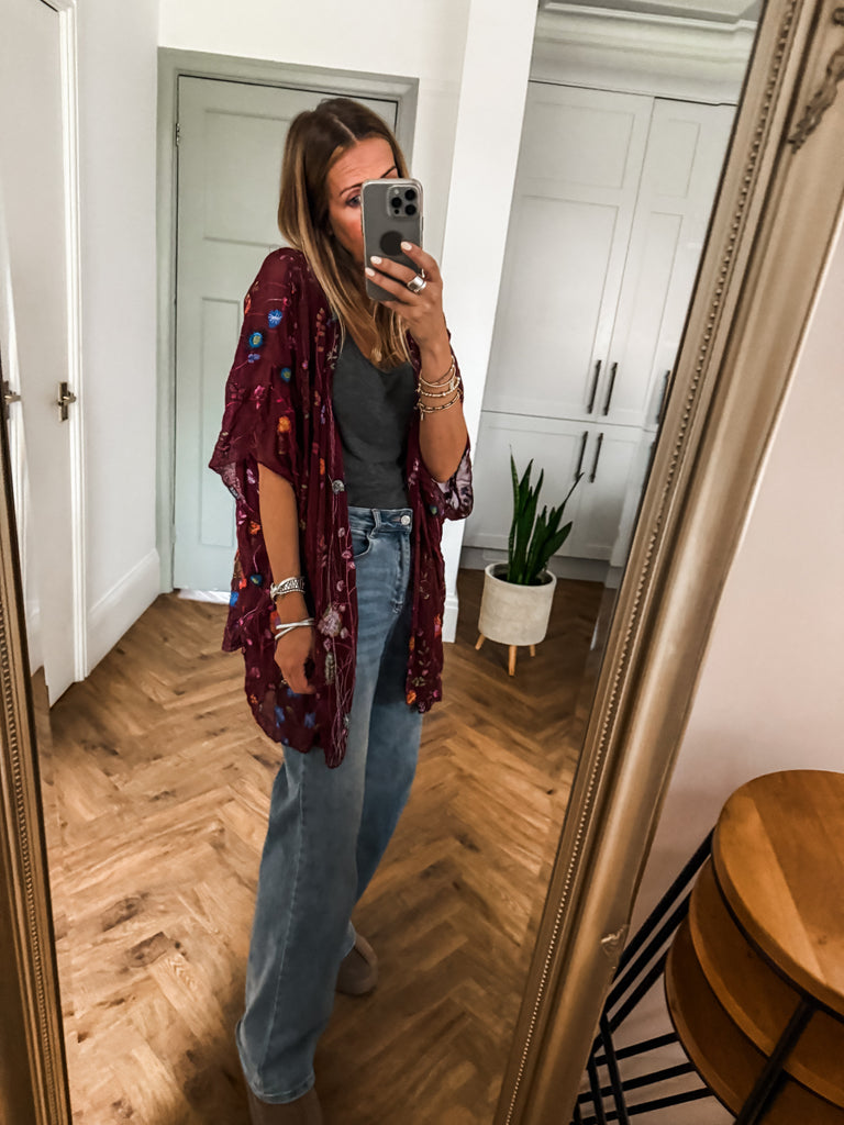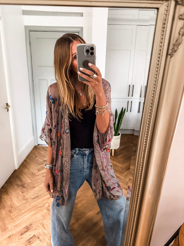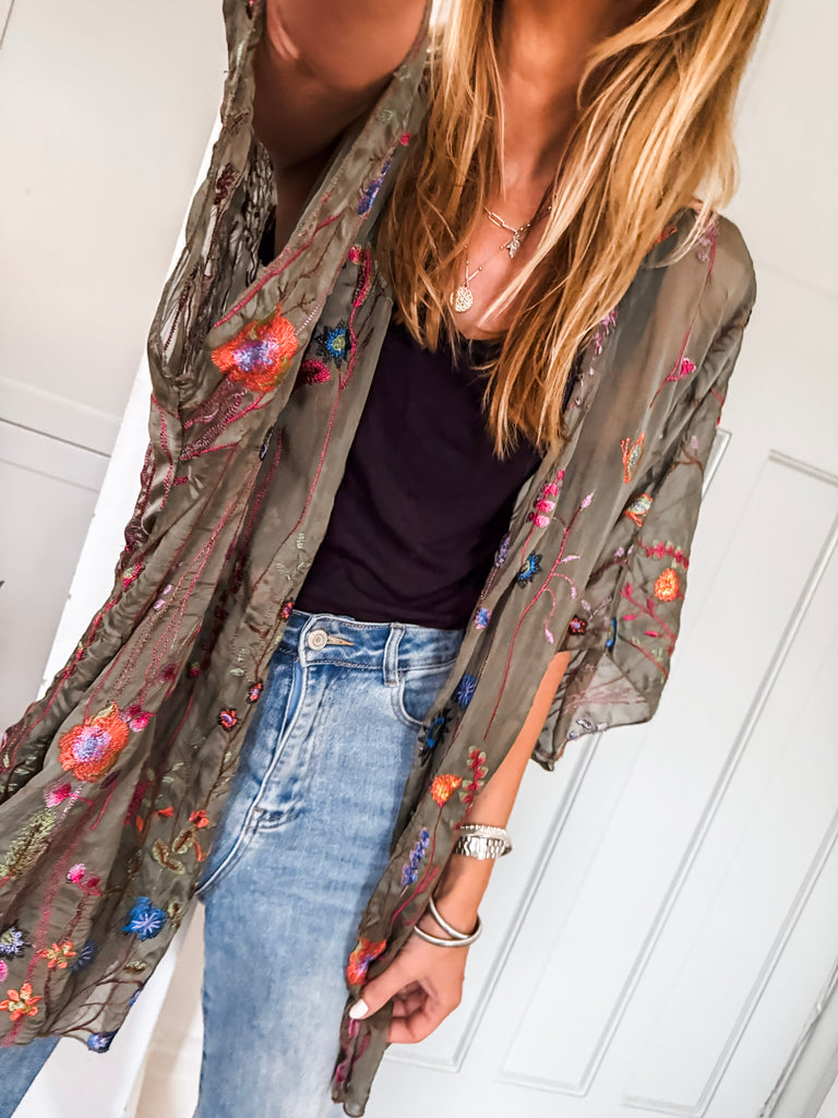 Effortlessly elegant, the Embroidered Floral Kimono features intricate floral detailing and a breezy open-front design. Its lightweight feel and relaxed fit make it perfect for easy layering. Throw it on to add a touch of texture and modern femininity to any look.
