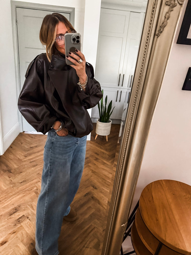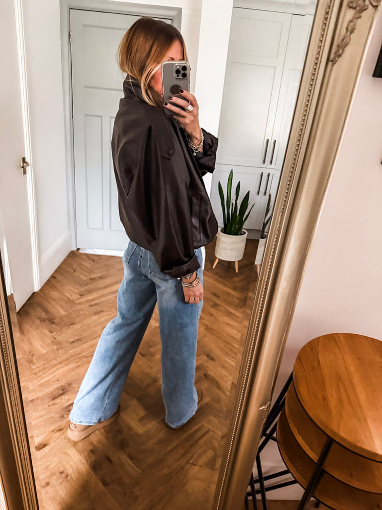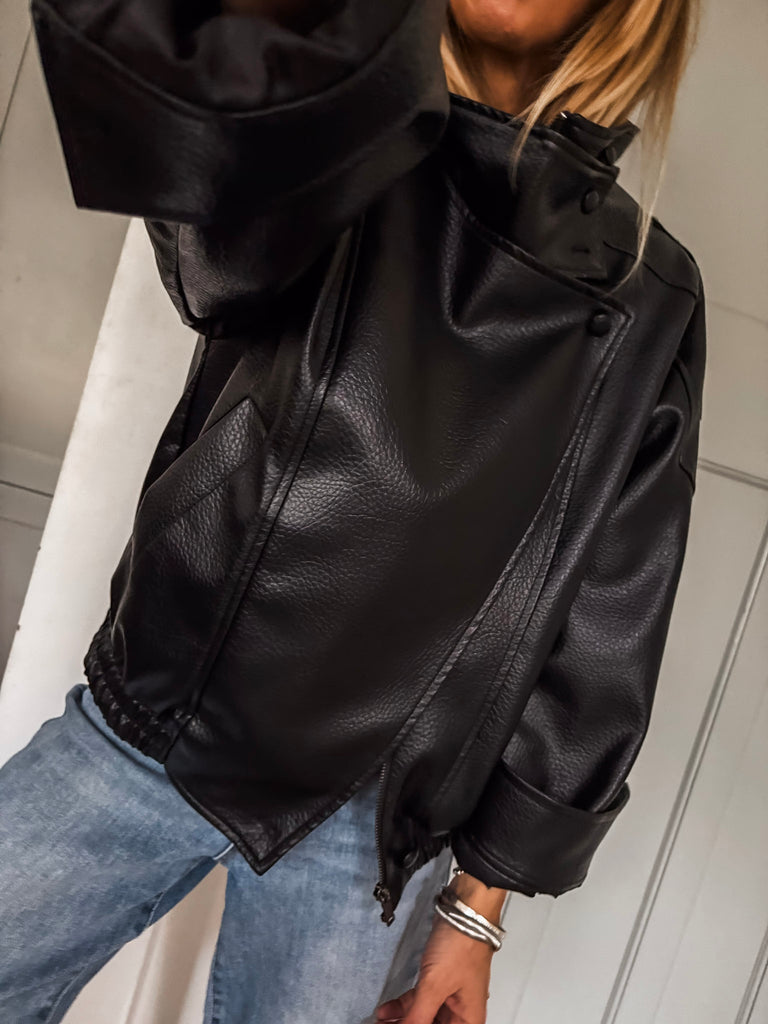 Channel effortless cool in this Funnel Neck Faux Leather Jacket. With its funnel collar, elasticated hem, and sleek finish, it delivers timeless style with a modern edge. Perfect for styling any look, from casual days to nights out. Very cool & on trend!