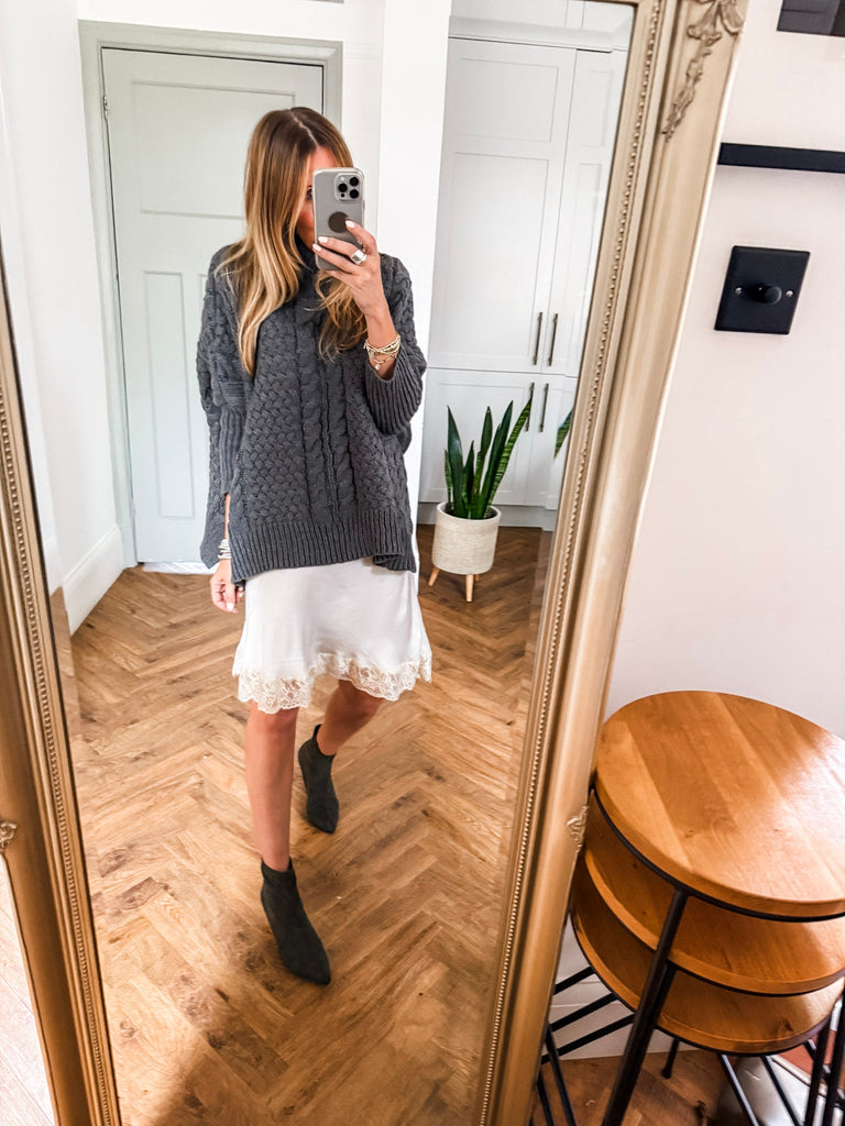 We love this jumper for its perfect blend of comfort and contemporary style. The chunky knit and roll neck offer warmth without compromising on a flattering silhouette. It’s a timeless piece that elevates everyday dressing with minimal effort.