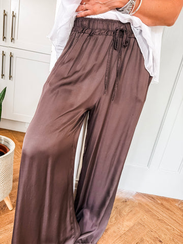 Silk-Mix Wide Leg Trousers