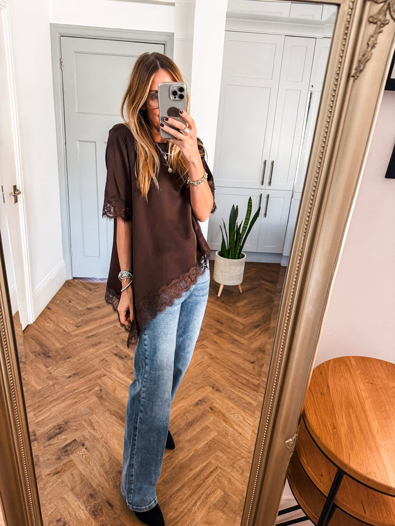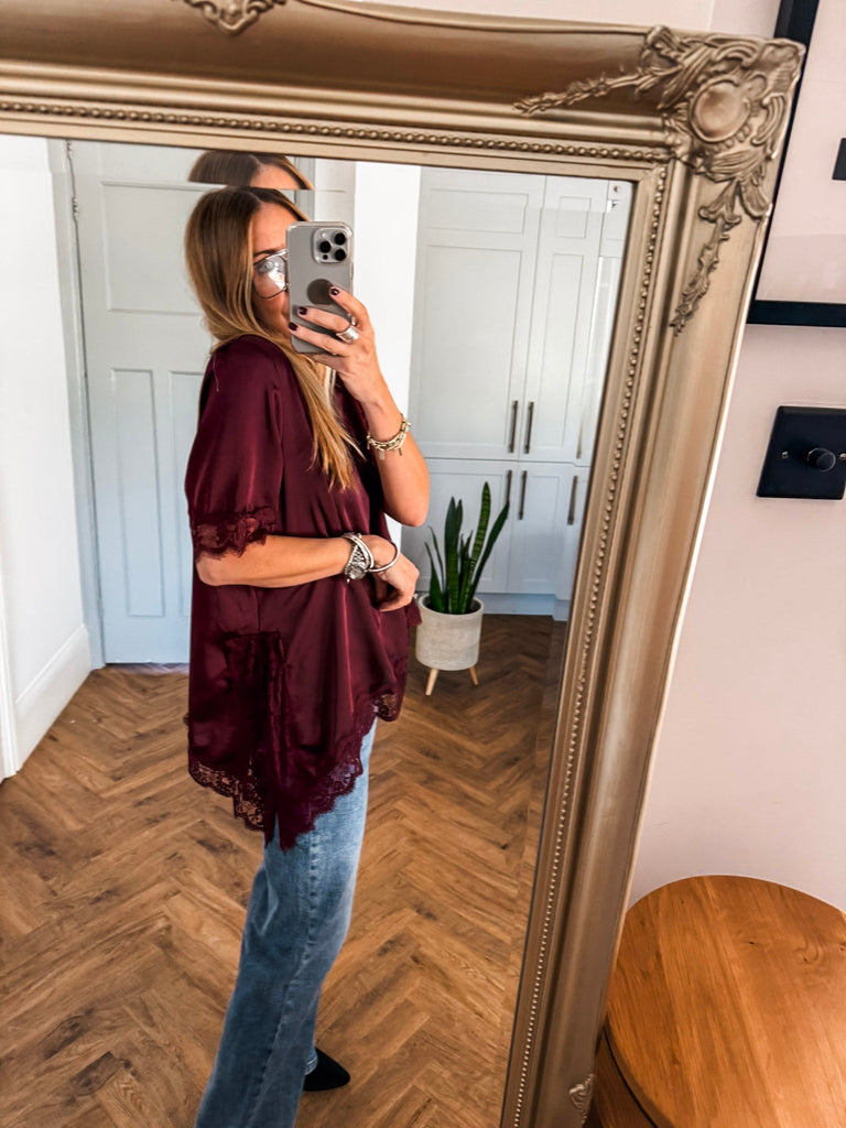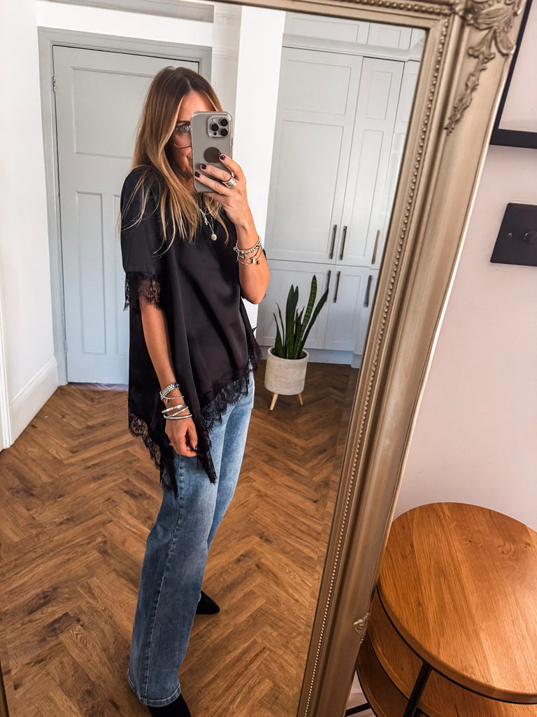 An elegant top for this winter that drapes beautifully across the body. The lace trim to the neckline and hem creates a more luxurious feel. This top is perfect for dressing up and down, in a timeless design that will last a lifetime in your wardrobe.