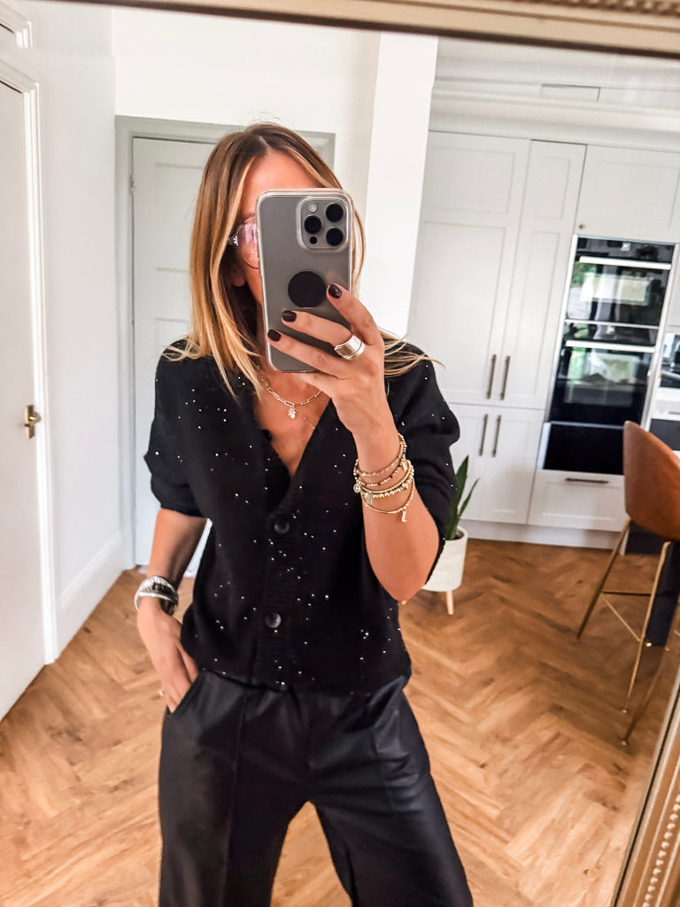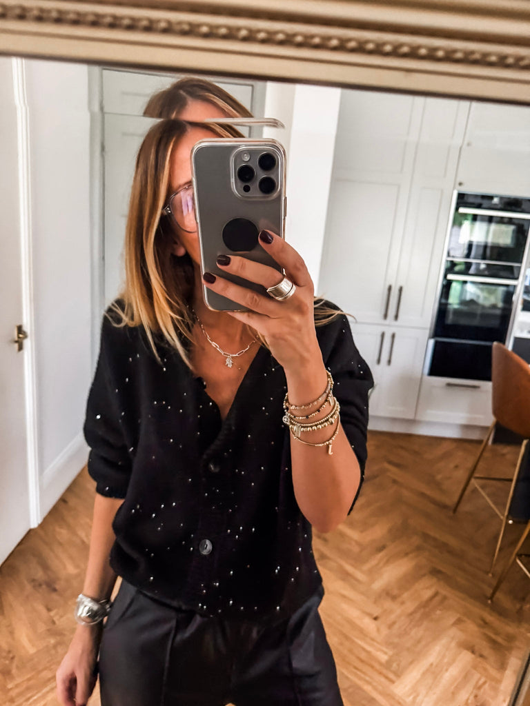 Make a statement with the Saint Tropez Nova Cardigan — a sequin fine knit that combines comfort with effortless edge. With its sleek button-down front and cozy long sleeves, it’s your go-to layer for standout style. Stylish, warm, and unapologetically you.