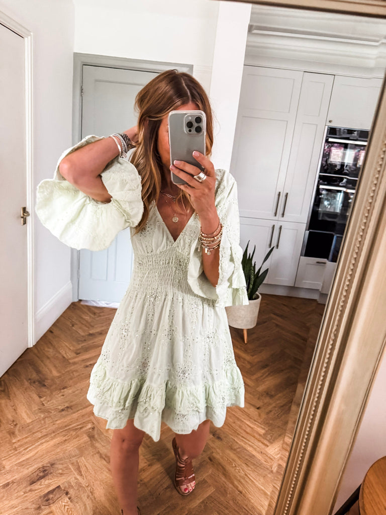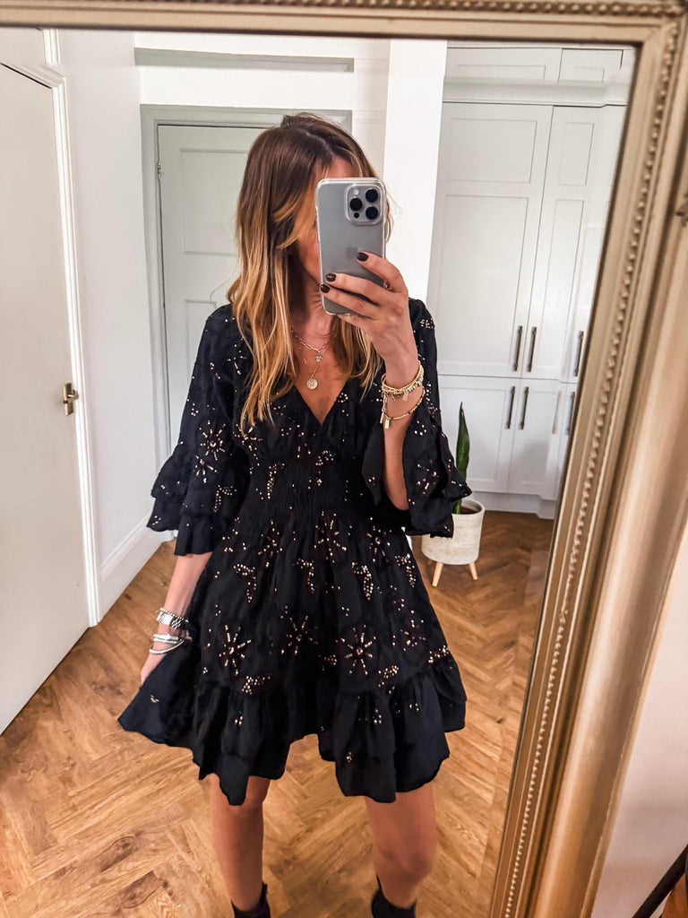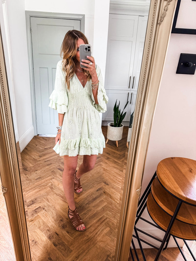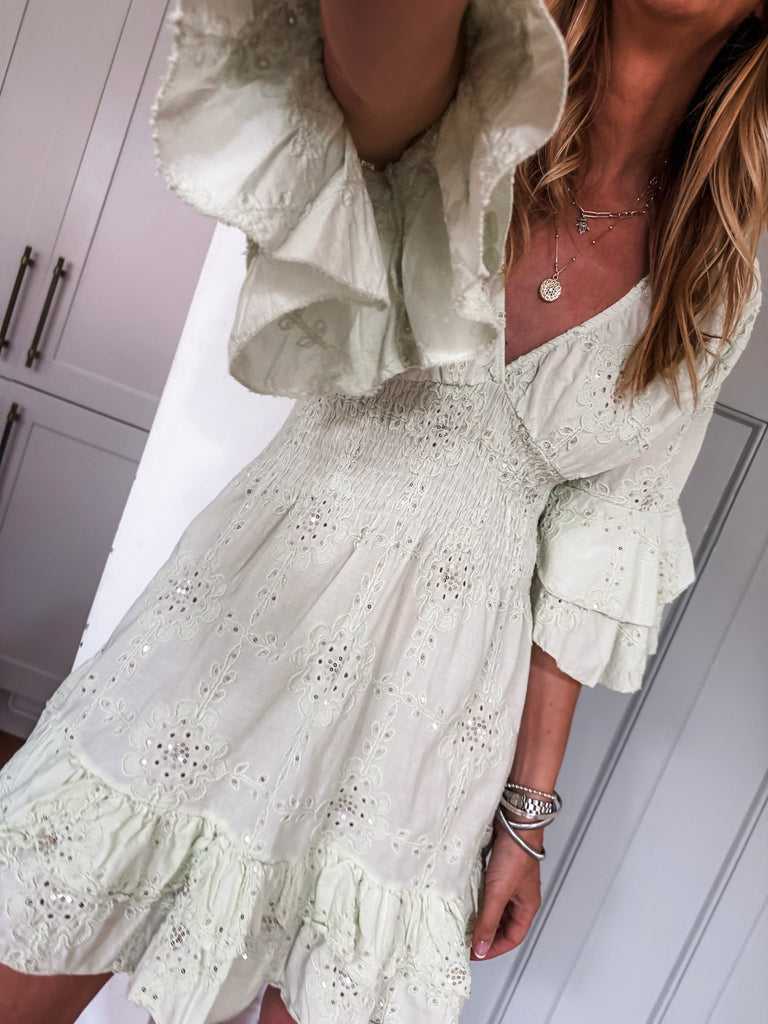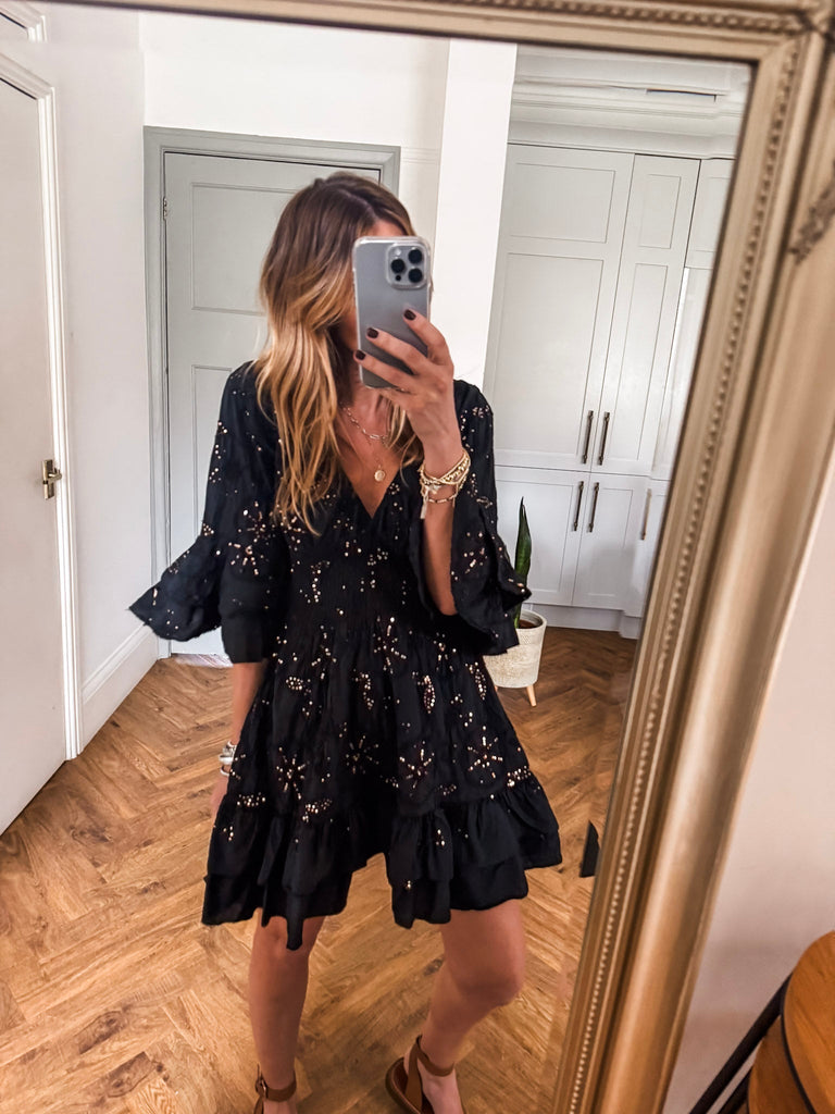 Wow these are gorgeous with their super stretchy waistband!! Shine effortlessly in our Sequin & Broderie Dress, featuring delicate broderie details, sparkling sequins, and playful frill accents. The stretchy waistband ensures a flattering, comfortable fit for any occasion. Perfect for when you want to stand out with elegance and ease! 100% cotton.