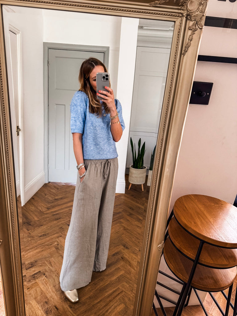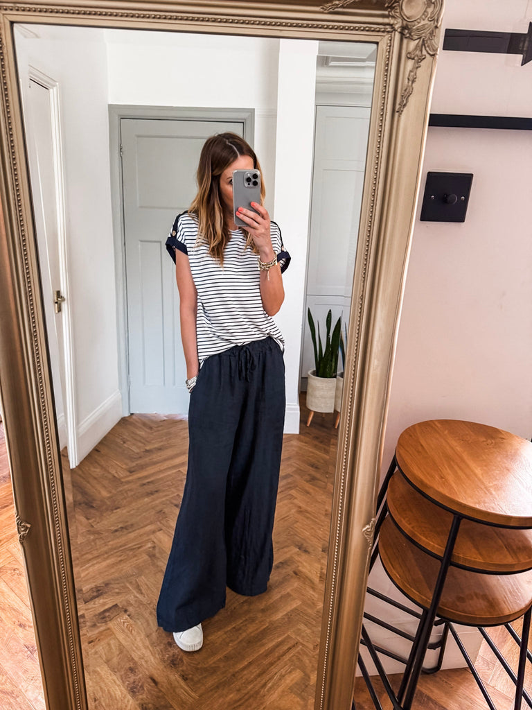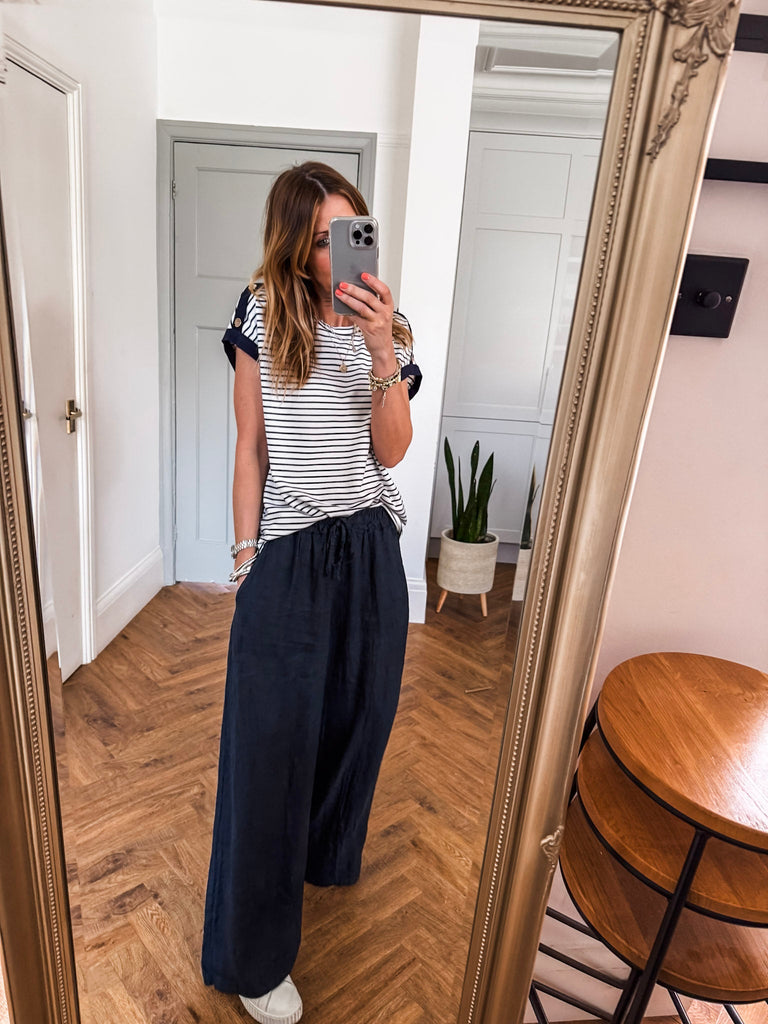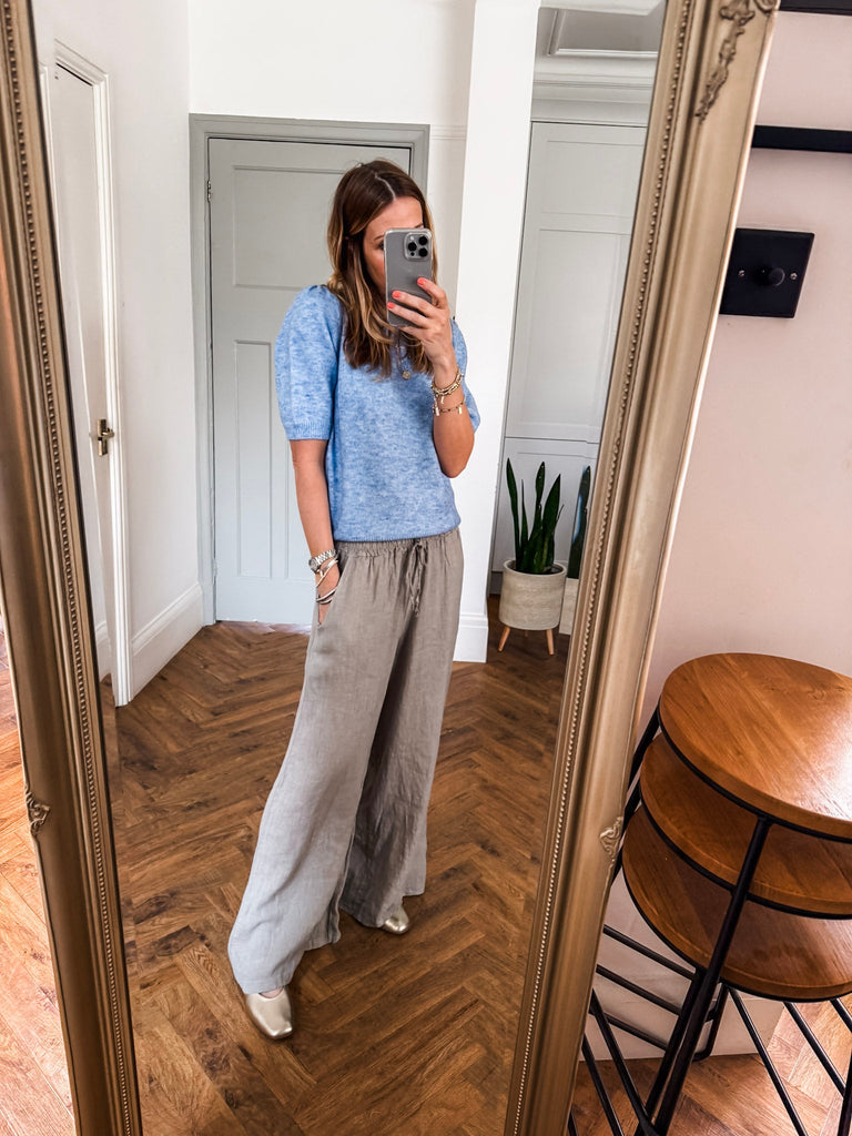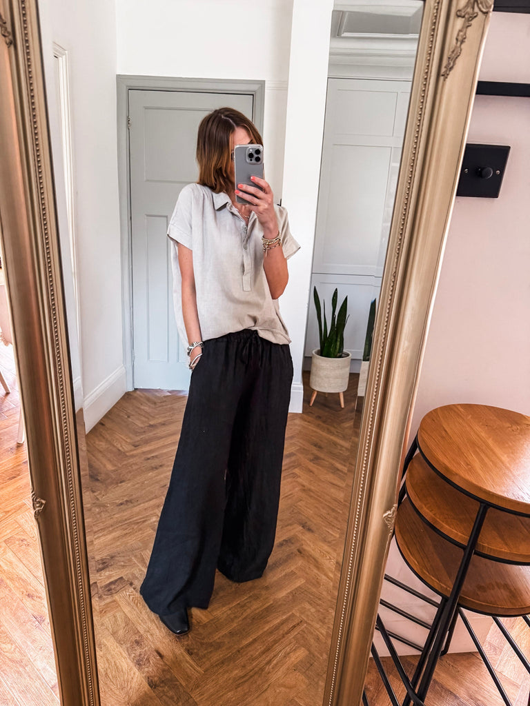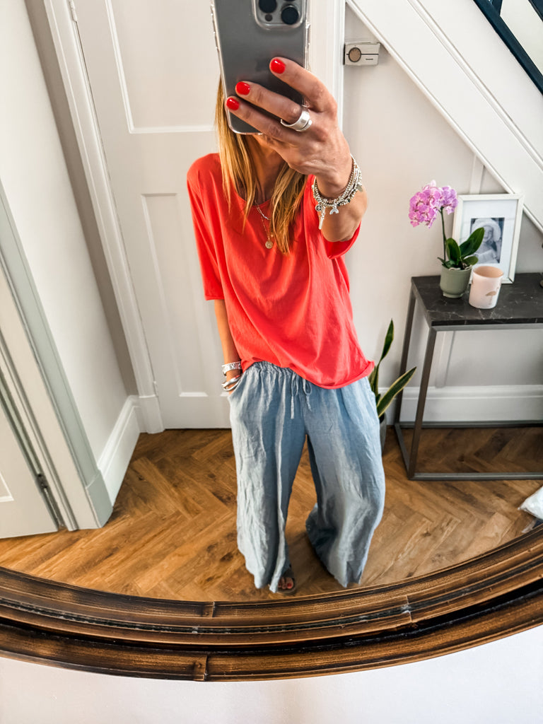 If you love our linen wide leg trousers then these are for you! Stay effortlessly stylish and cool in these breathable linen trousers, designed for all-day comfort. Featuring an elasticated waist and handy pockets, they’re perfect for laid-back outings or relaxed lounging. Style your wardrobe with this versatile blend of comfort and chic simplicity.