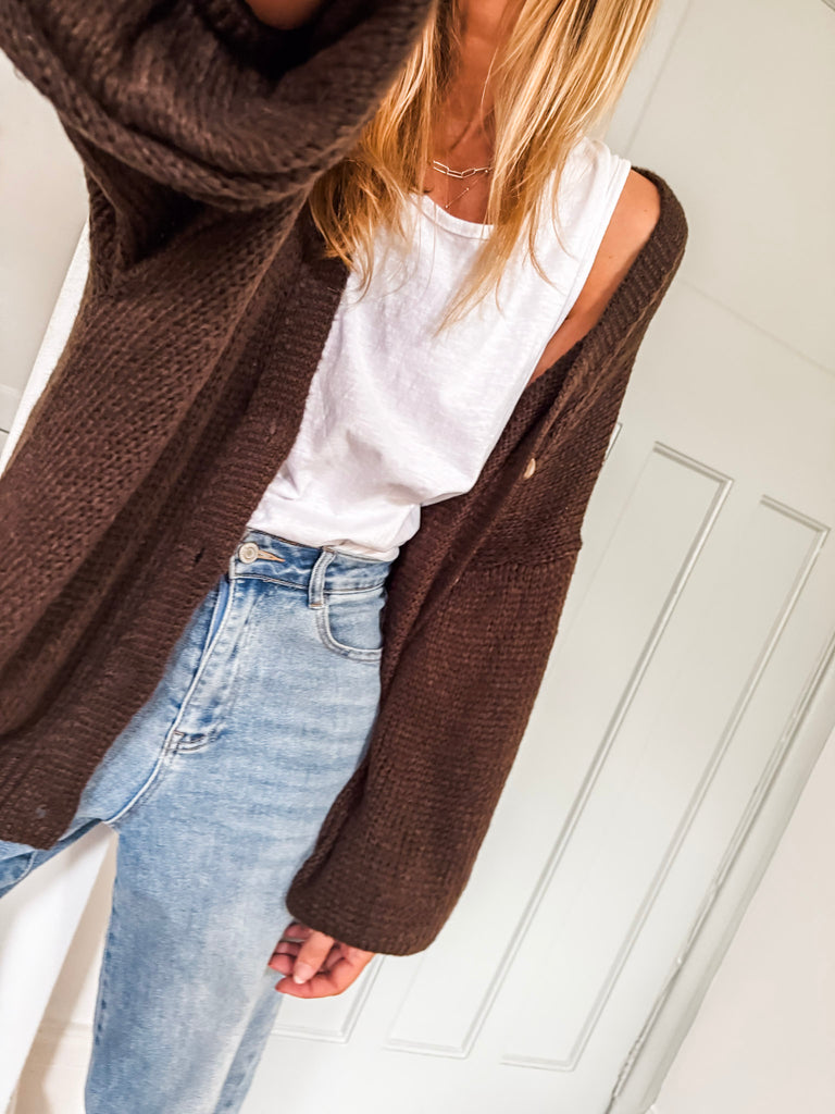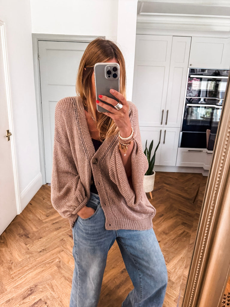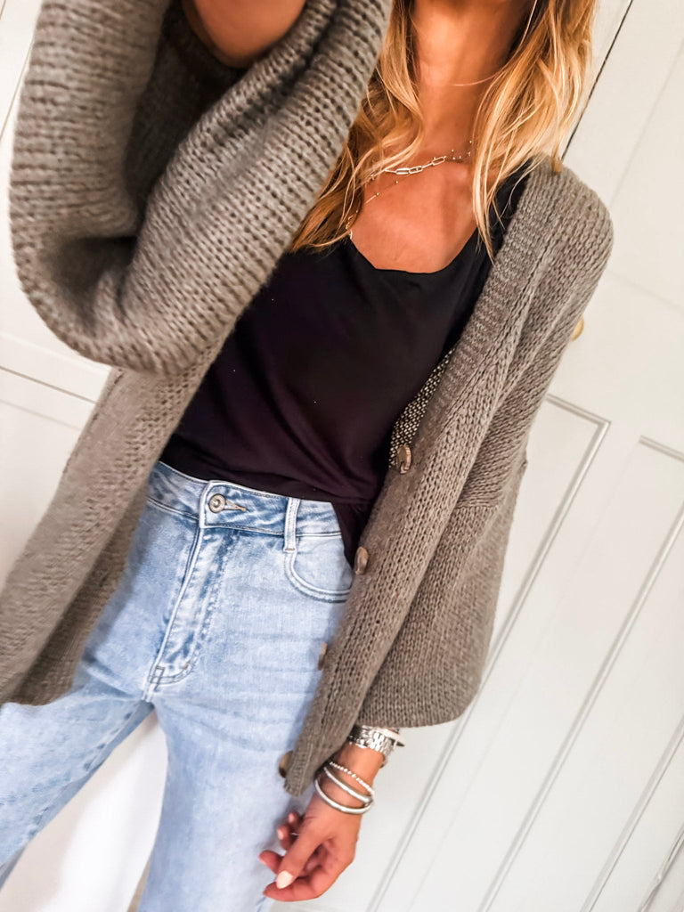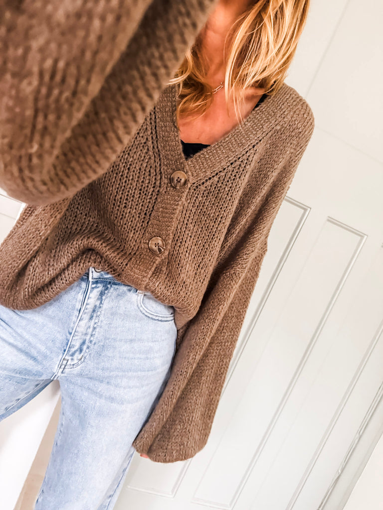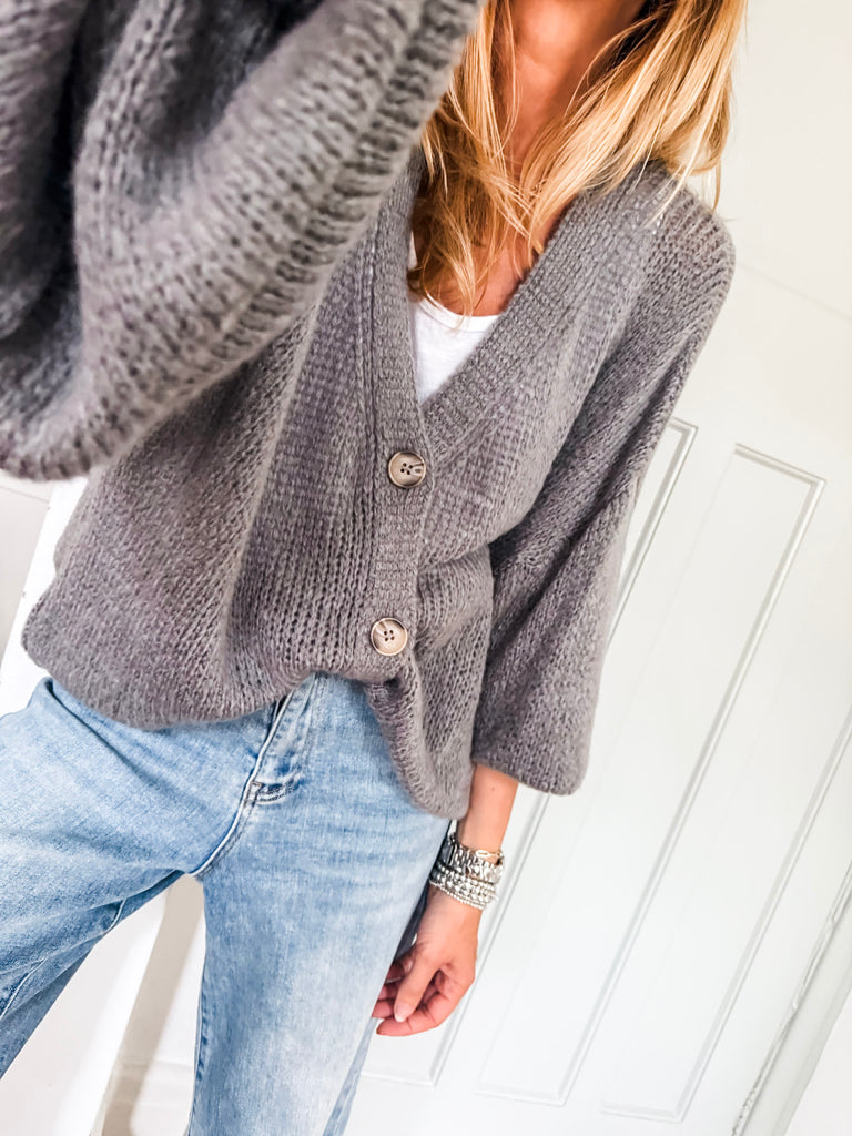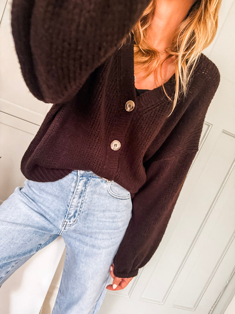 The Balloon Sleeve Button Cardigan brings effortless style with its relaxed fit and statement sleeves. A flattering V-neck and button-down front make it perfect for layering. Cool, casual, and modern—it’s your new go-to for laid-back style with a twist.