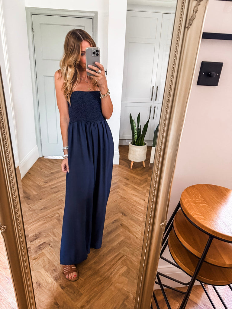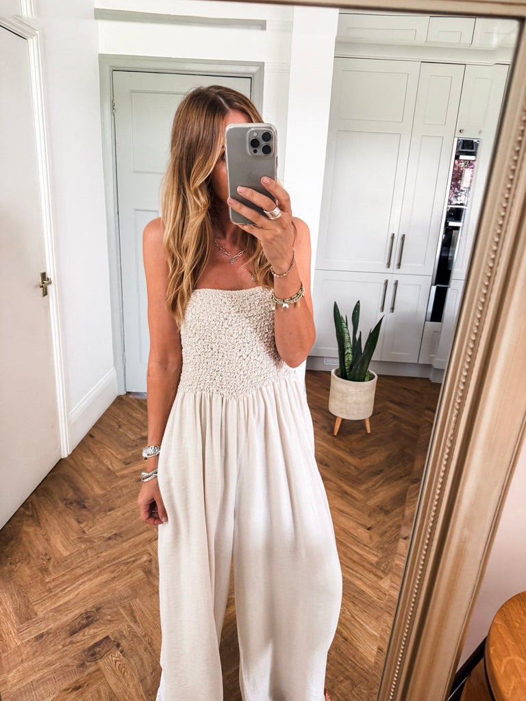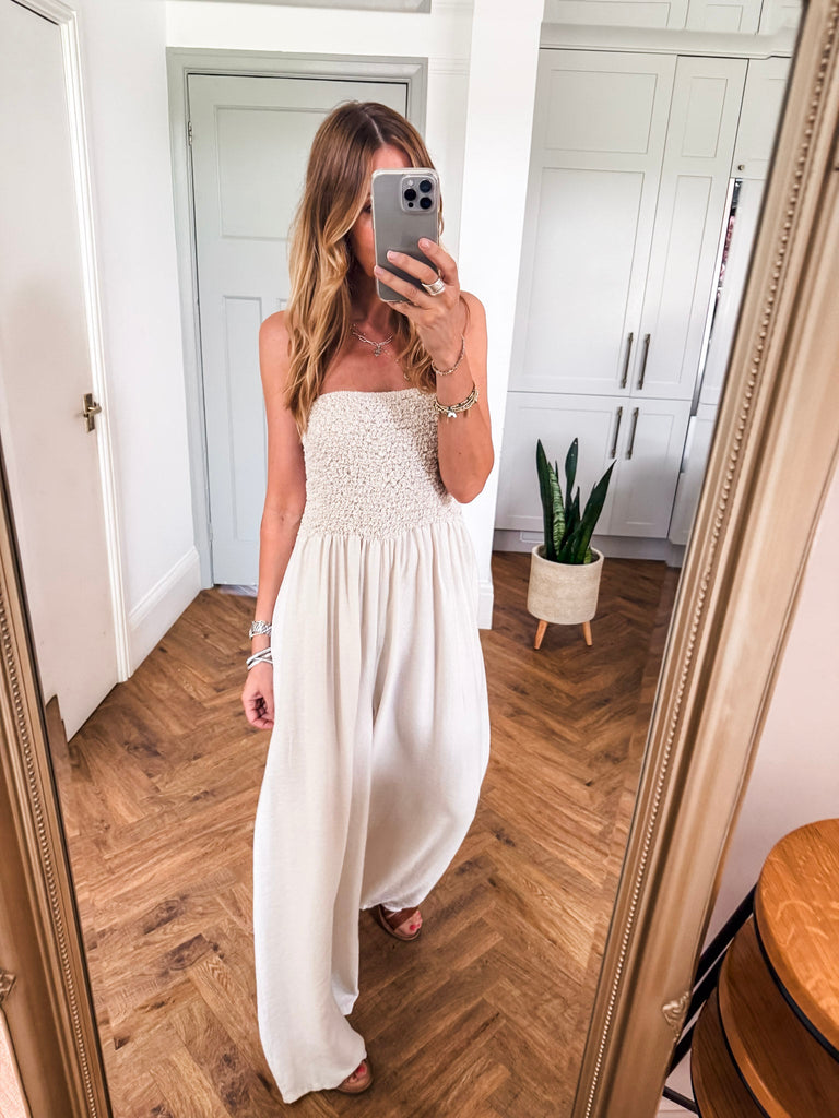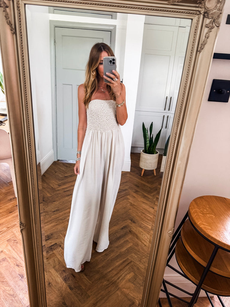 Bandeau Shirred Jumpsuit