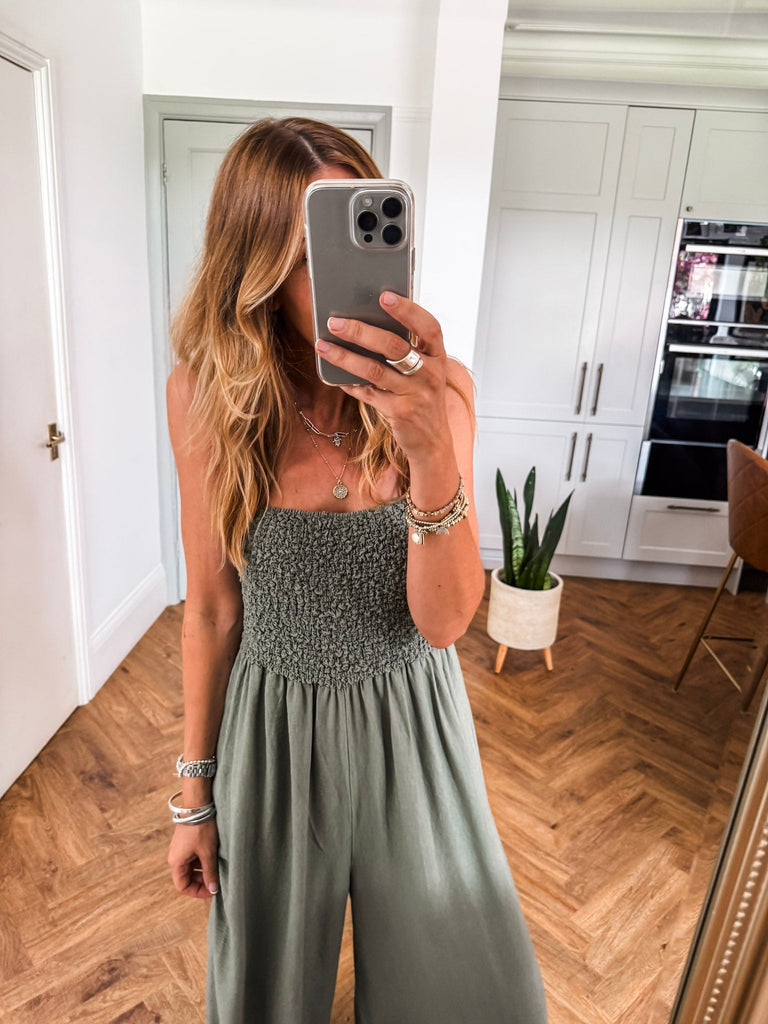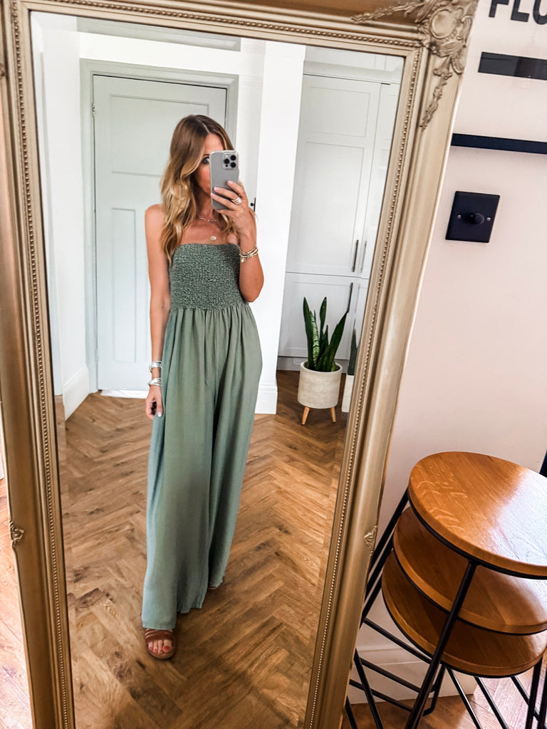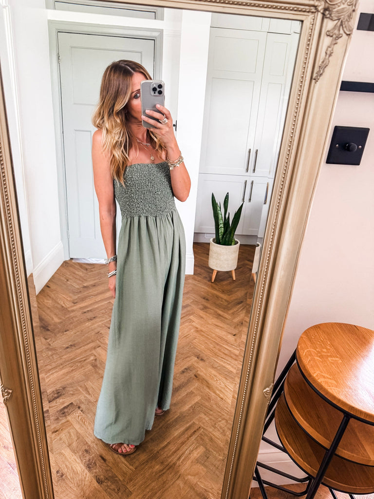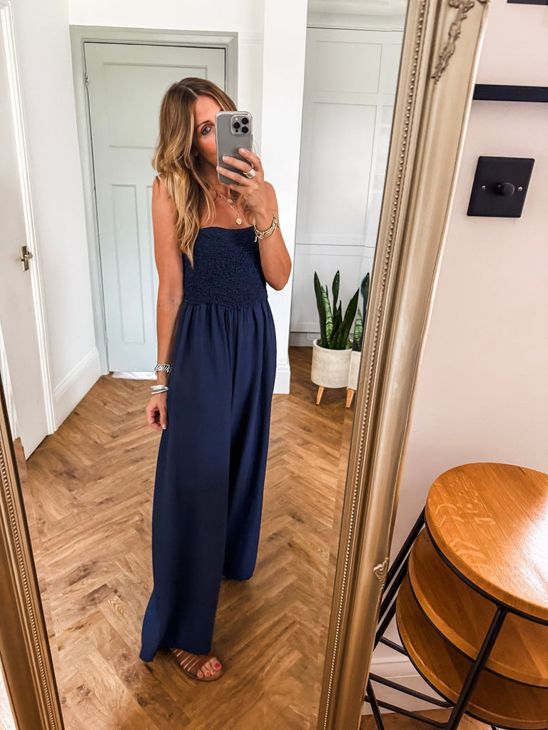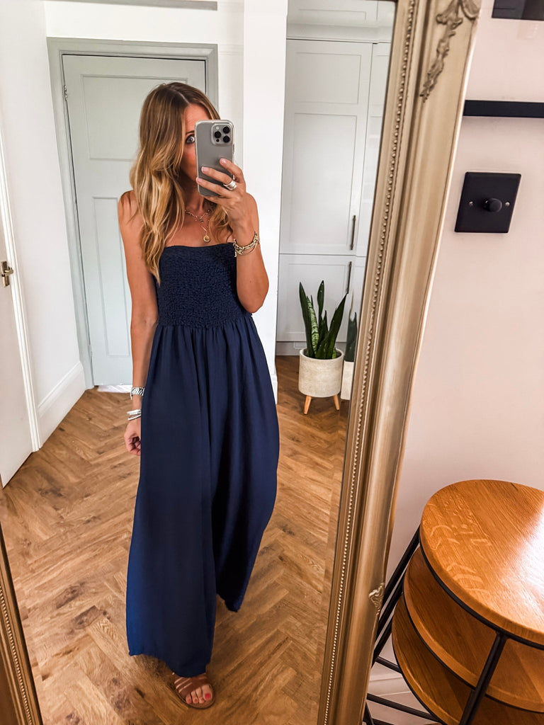 Bandeau Shirred Jumpsuit