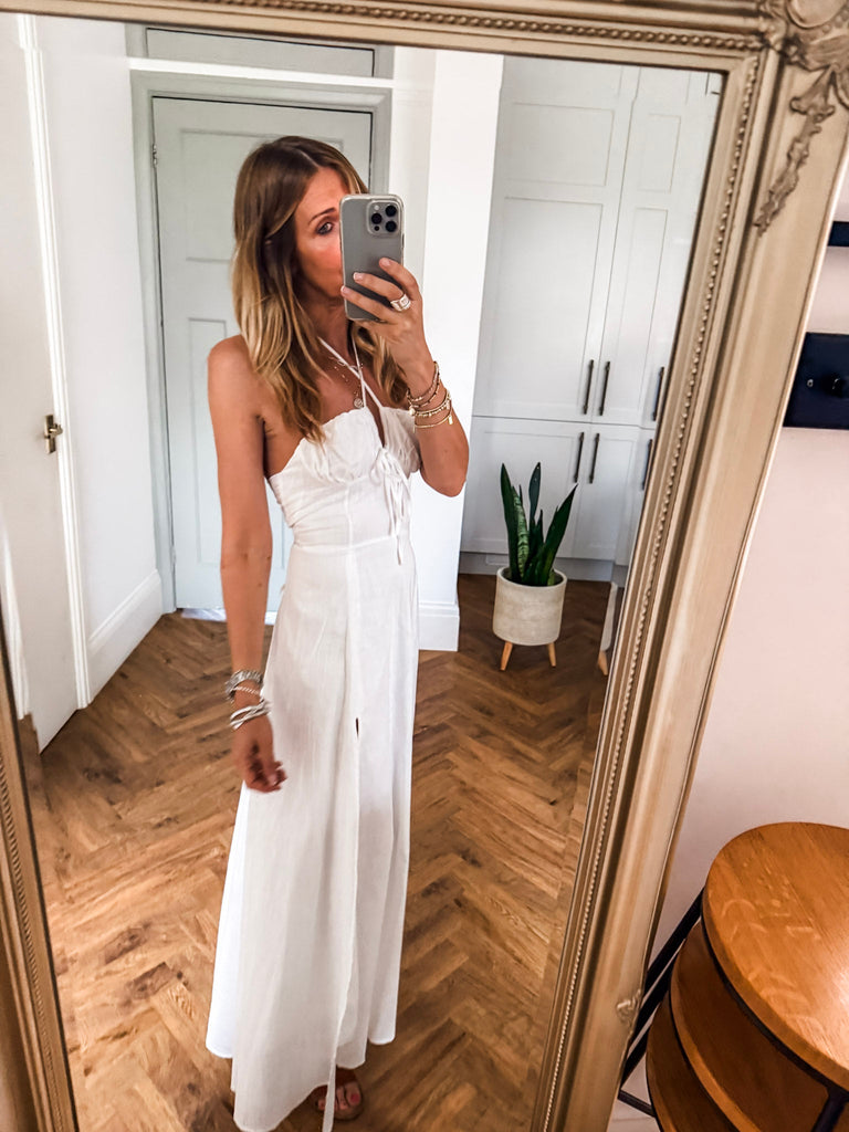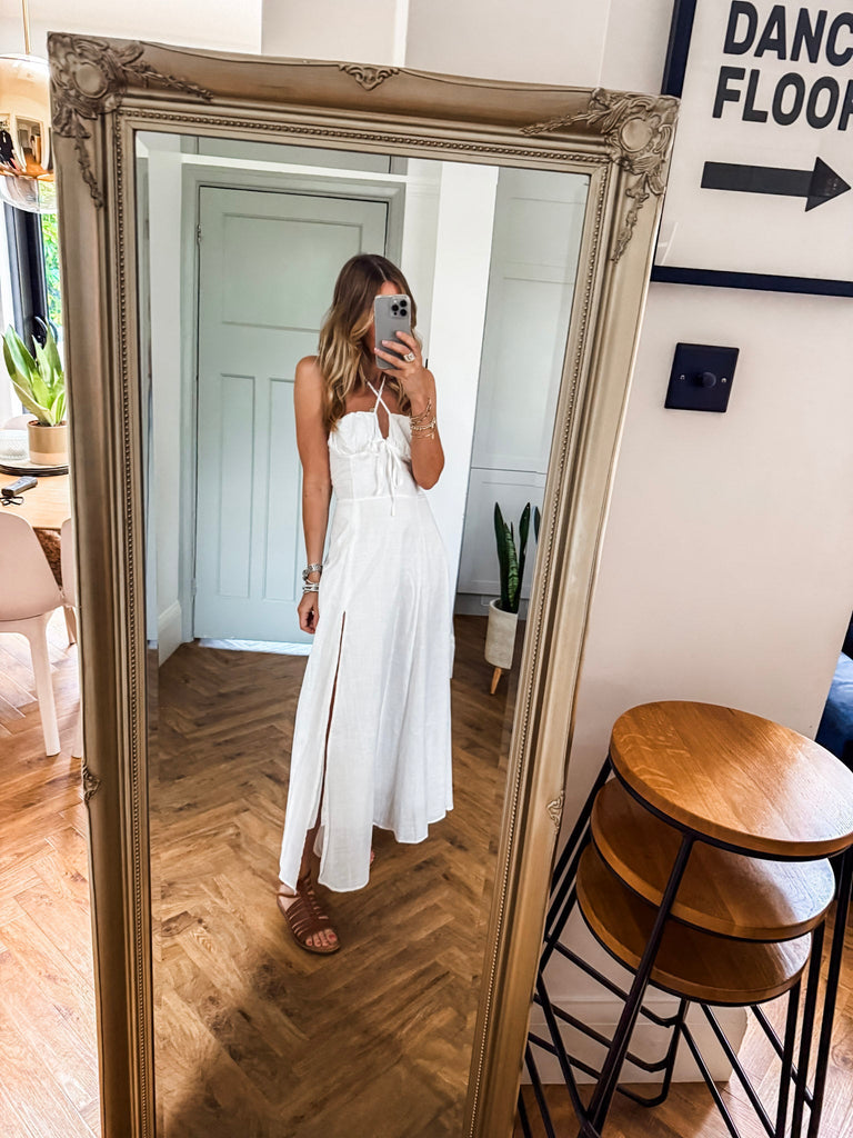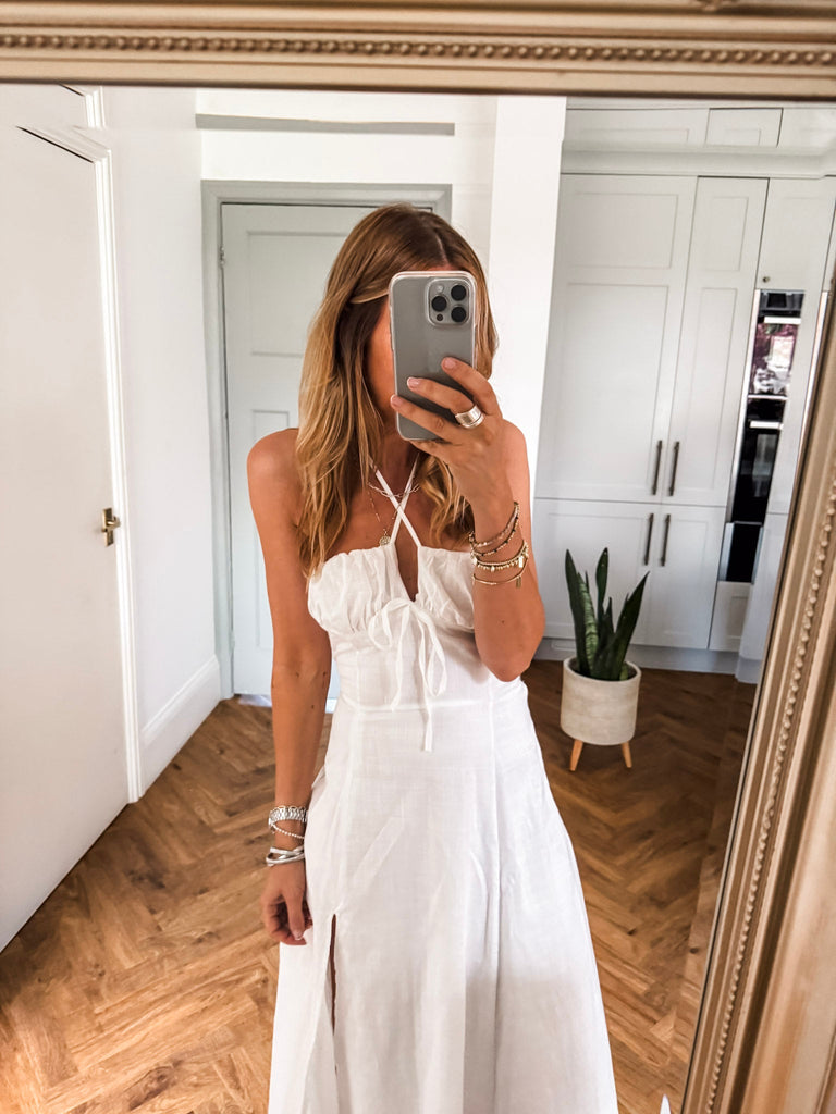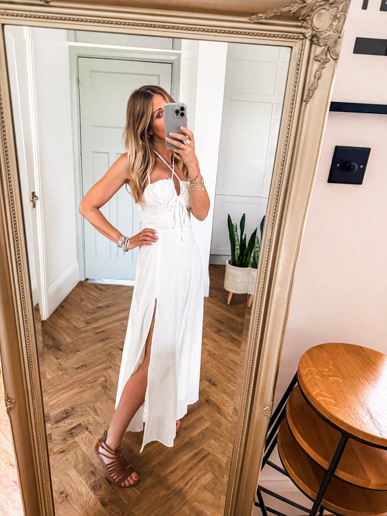 Stay effortlessly chic in this cotton strappy maxi dress, designed for warm days and nights. The sleek side split and zip fastening add subtle edge and easy wearability. Perfect for laid-back elegance with a modern twist. Corset style back!