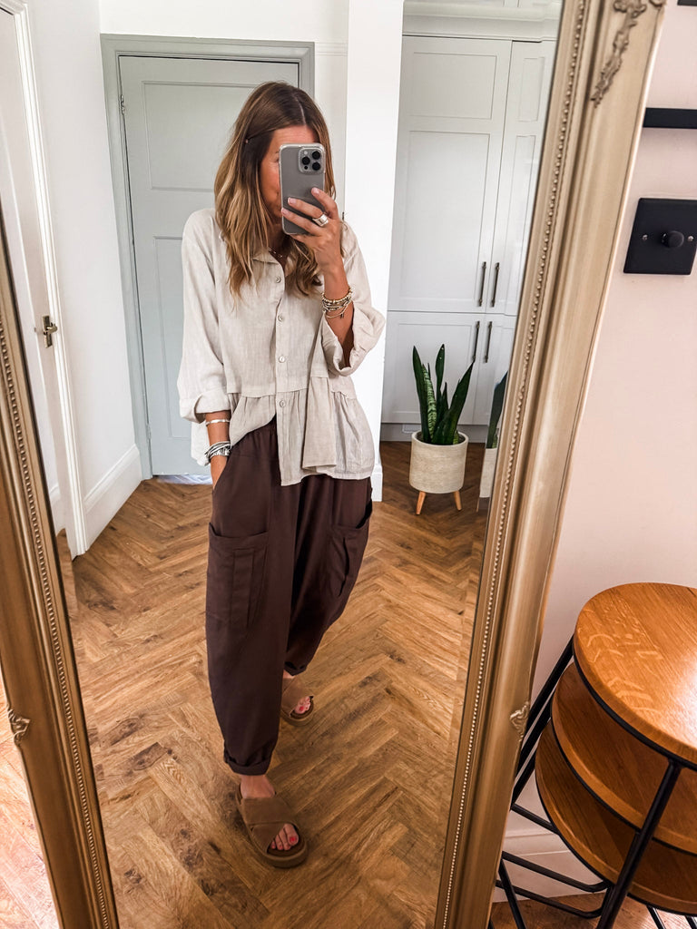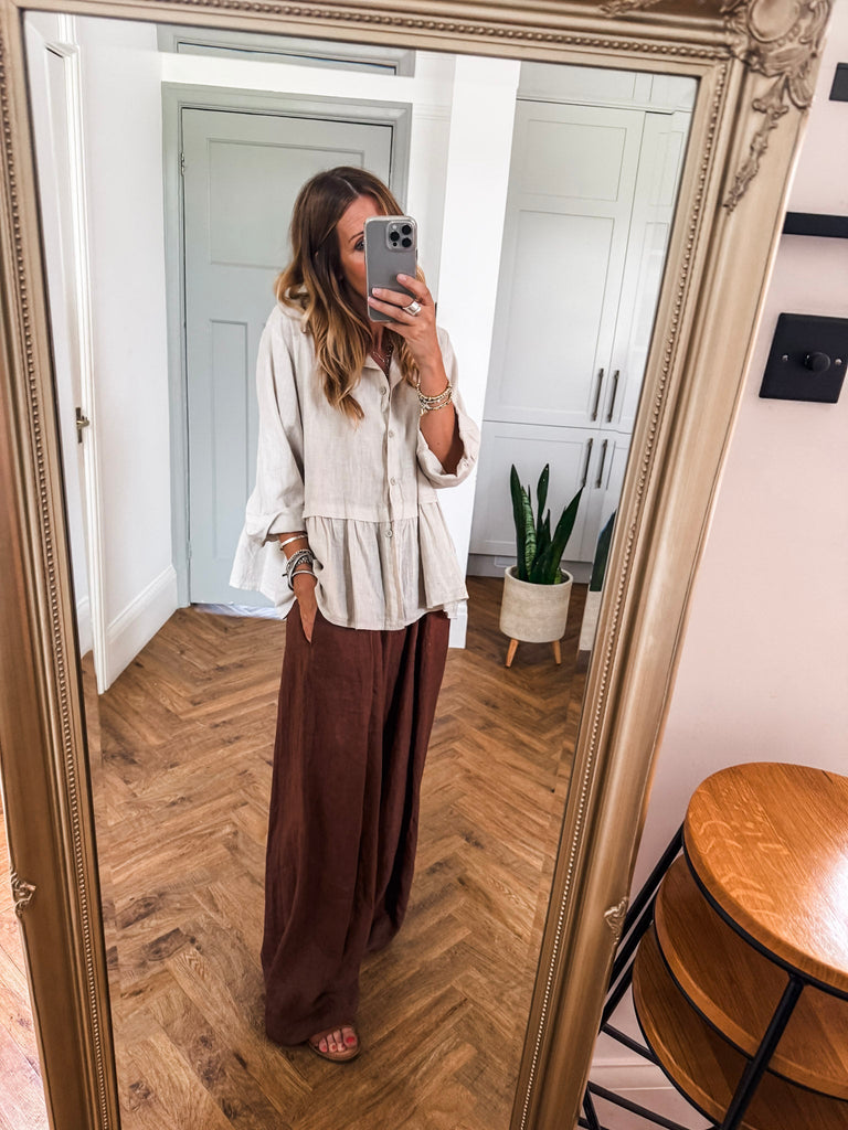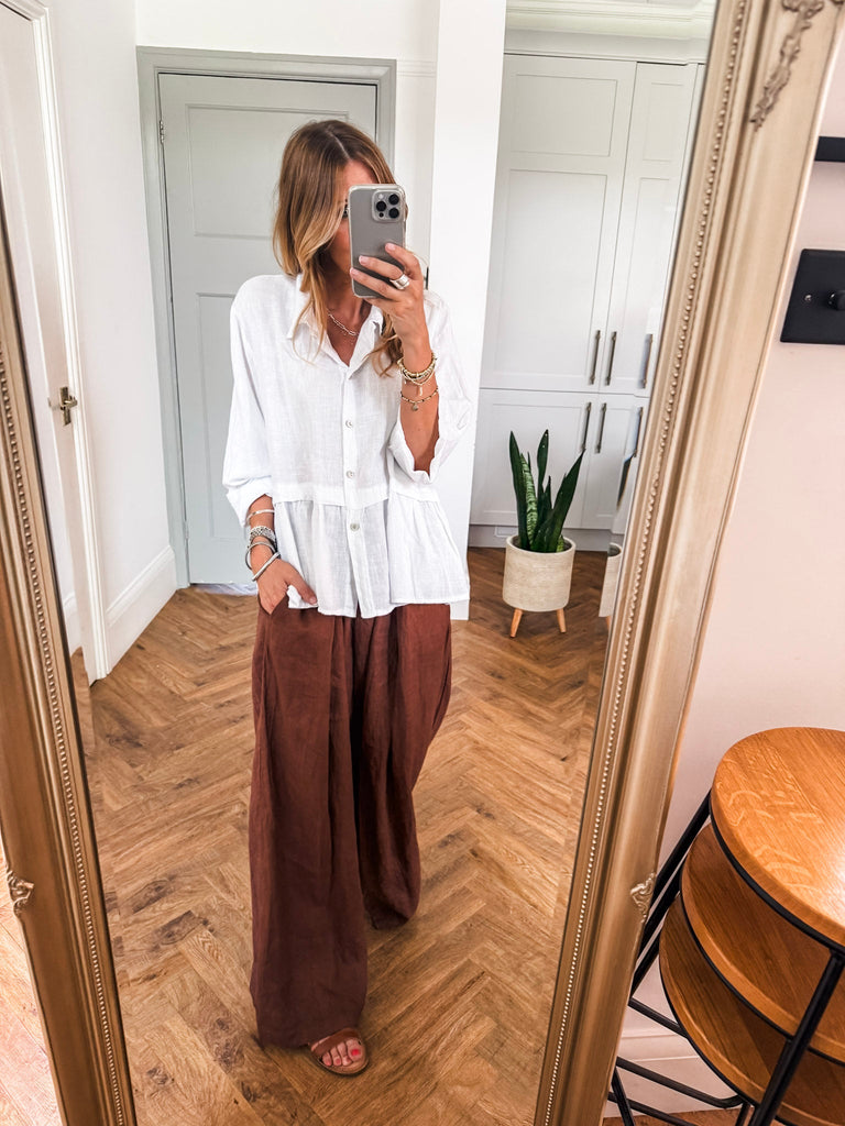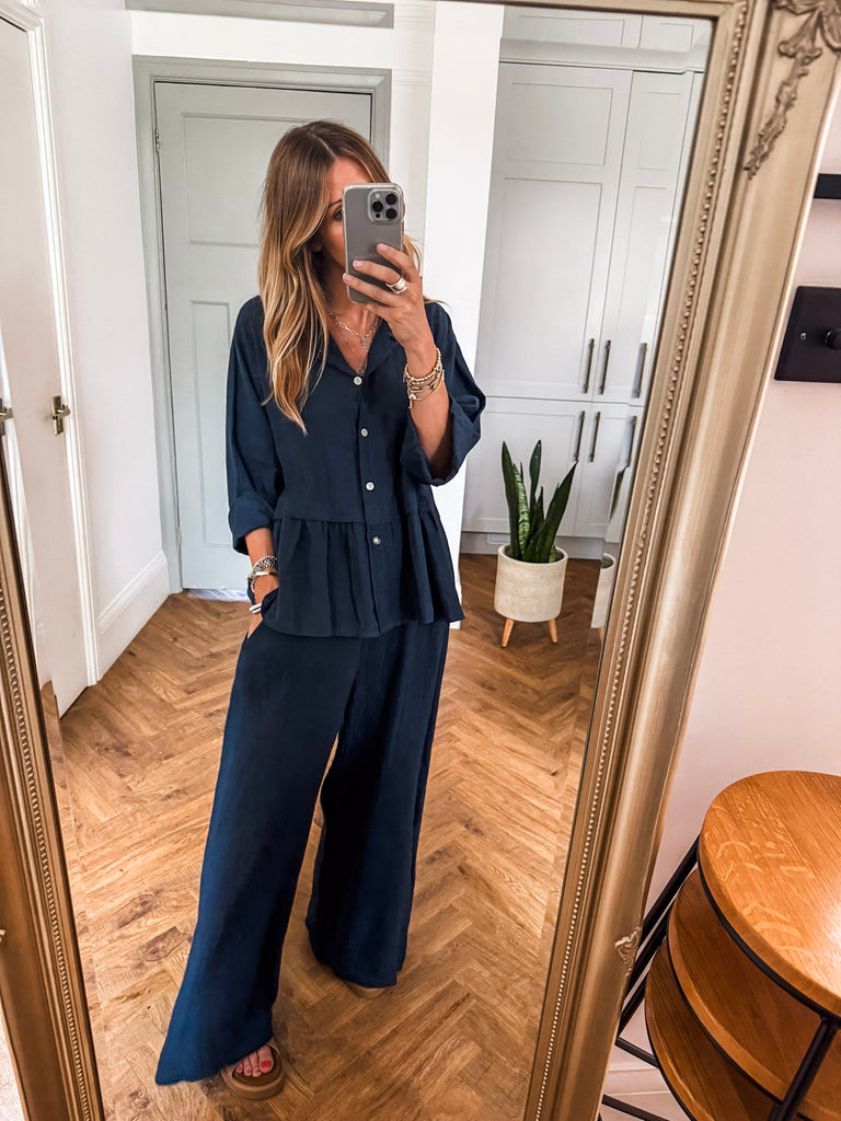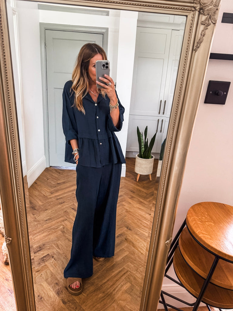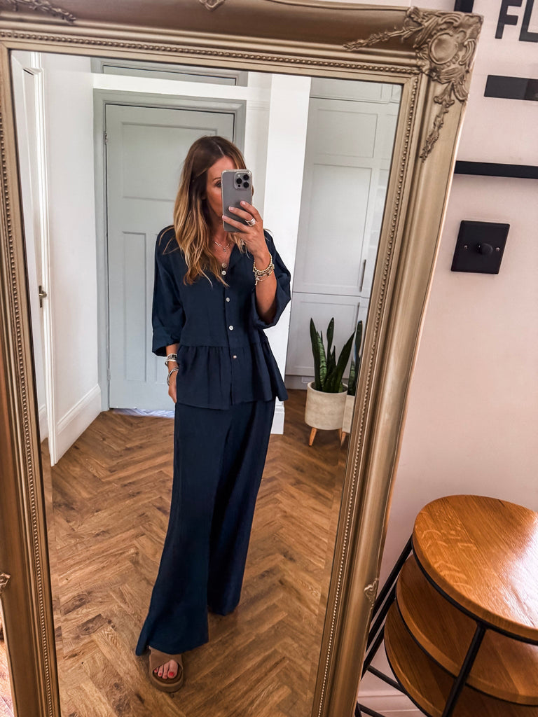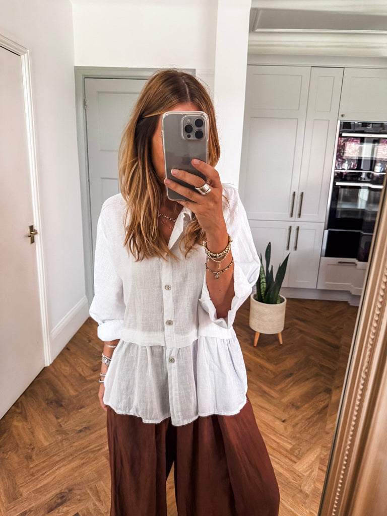 This linen frill shirt blends airy comfort with playful detail, featuring a frill hem, classic collar, and button-down front. Long sleeves make it perfect for layering or wearing solo across seasons. It’s an effortlessly cool staple with a soft, feminine twist.