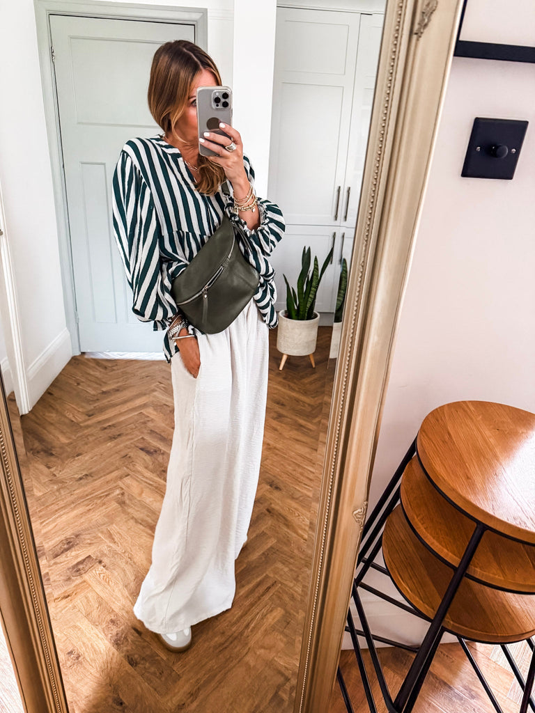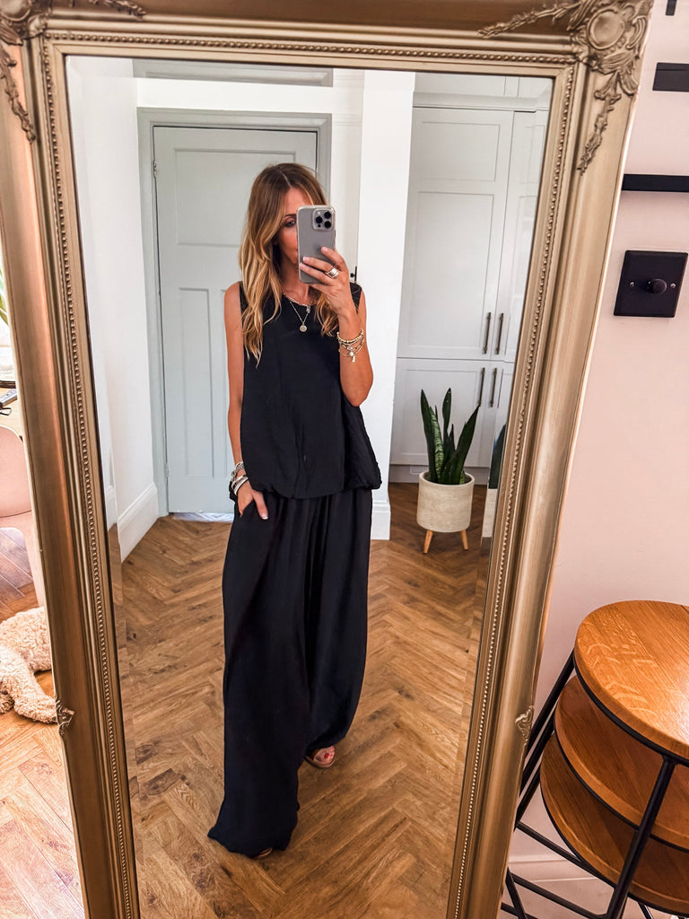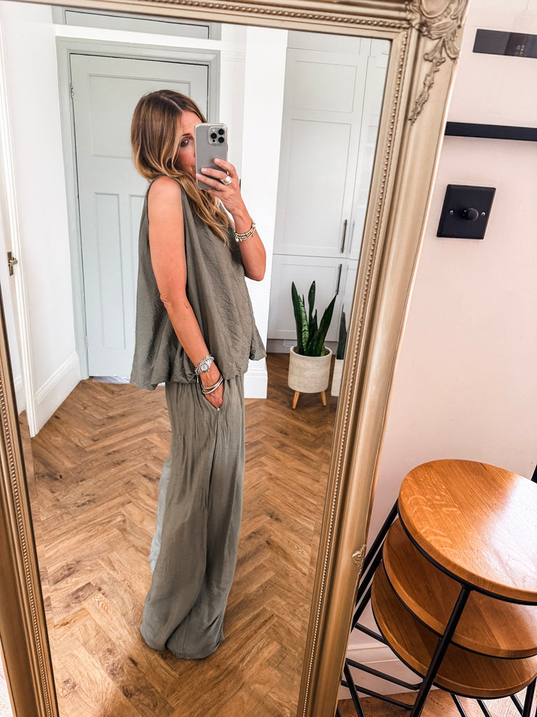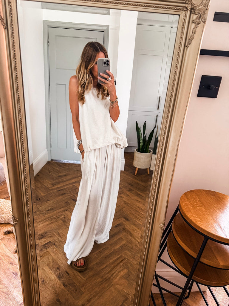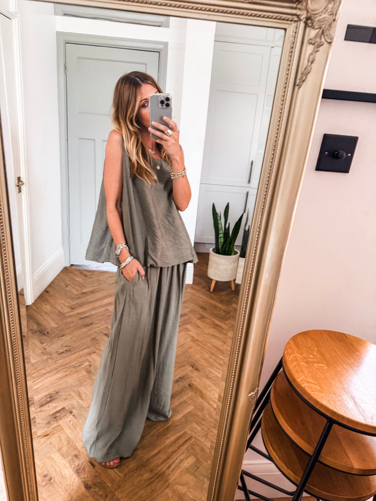 Stay effortlessly cool in these Crinkle Wide Leg Trousers—relaxed, flattering, and made to move with you. An elasticated waist and pockets bring all-day comfort and ease. The crinkle texture adds just the right touch of laid-back edge, perfect for dressing up or down. Matching top available!!