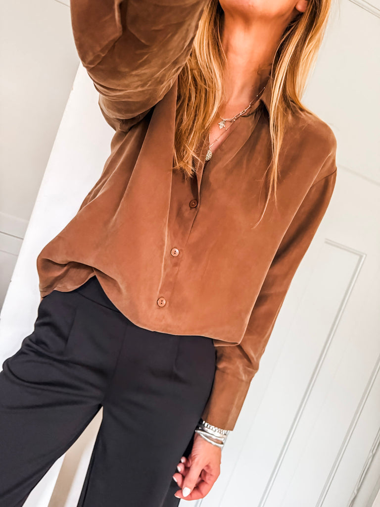 Layer the Eden Shirt over a fitted tank and jeans for an easy off-duty look. Button it up with tailored trousers and boots for a polished, modern vibe. For cooler days, wear it open over a knit with a crossbody bag and sneakers.