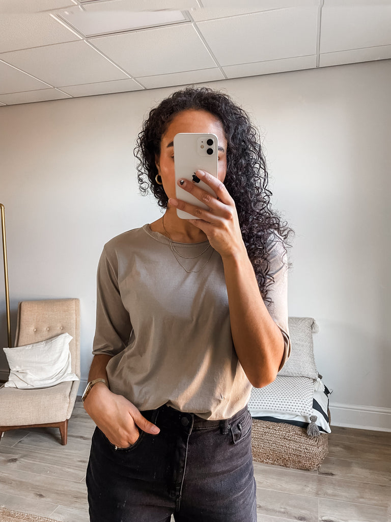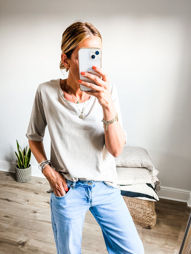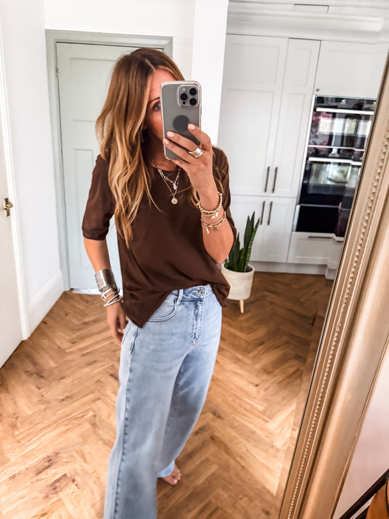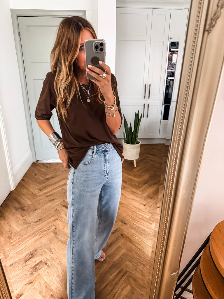 A t-shirt that is perfect in every way, this is a staple that your wardrobe needs! With a flattering round neck and short sleeves that you can wear rolled up. The soft cotton material wears well so this can be worn time and time again. Perfect all year round, with shorts and sandals in the summer and layered with leggings and cardigans in the winter.