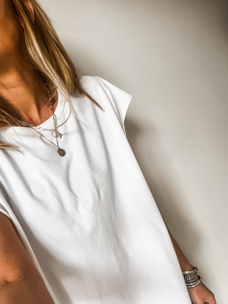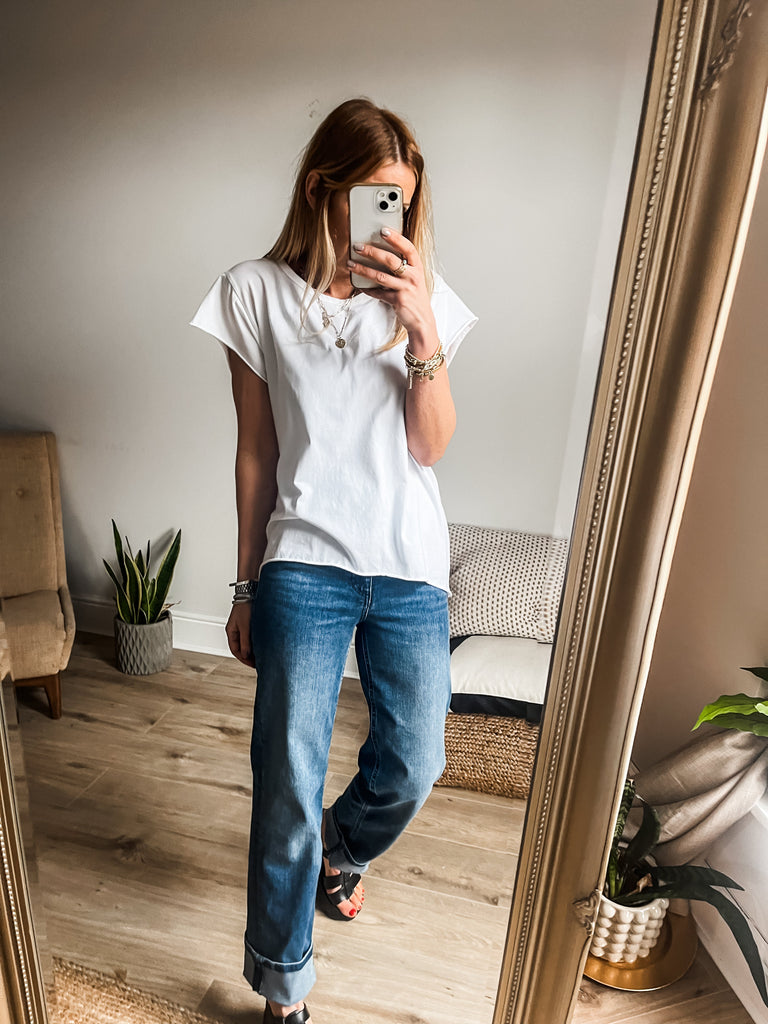 This Cap Sleeve T-Shirt is an essential for any wardrobe. It has a round neck, cap sleeves, and raw edge detail that gives it a cool, casual style. Offering all-day comfort, the relaxed fit is perfect for a laid-back, everyday look.