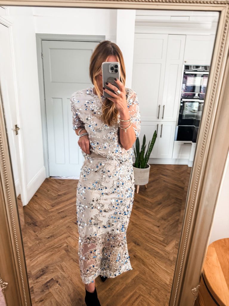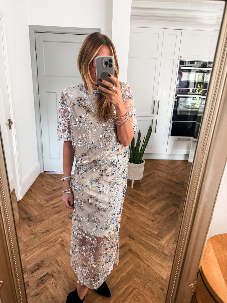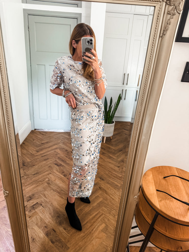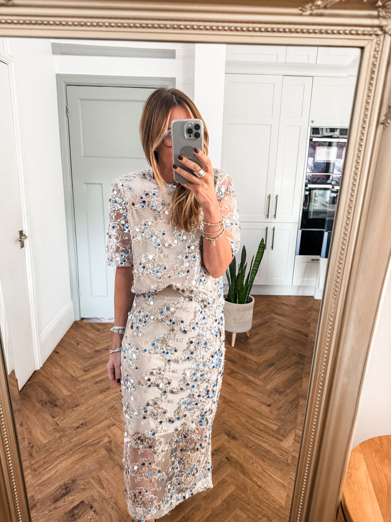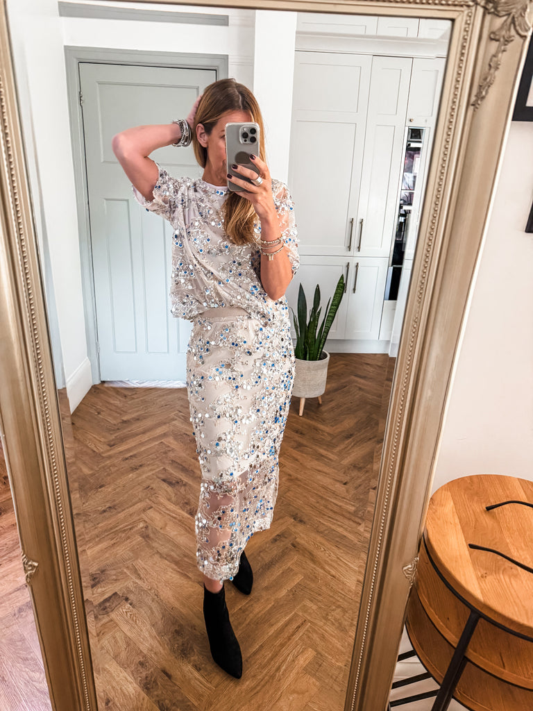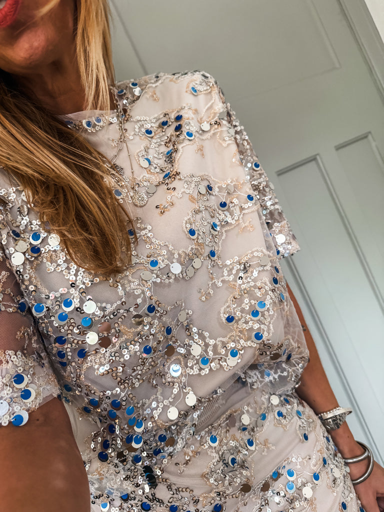 Wow this is beautiful!! Very GLAM!! Shine effortlessly in the Saint Tropez Nelda Blouse, designed with shimmering sequins that move beautifully with every step. While the net overlay adds a touch of texture and elegance. Perfect for styling any look from day to night. Matching skirt available