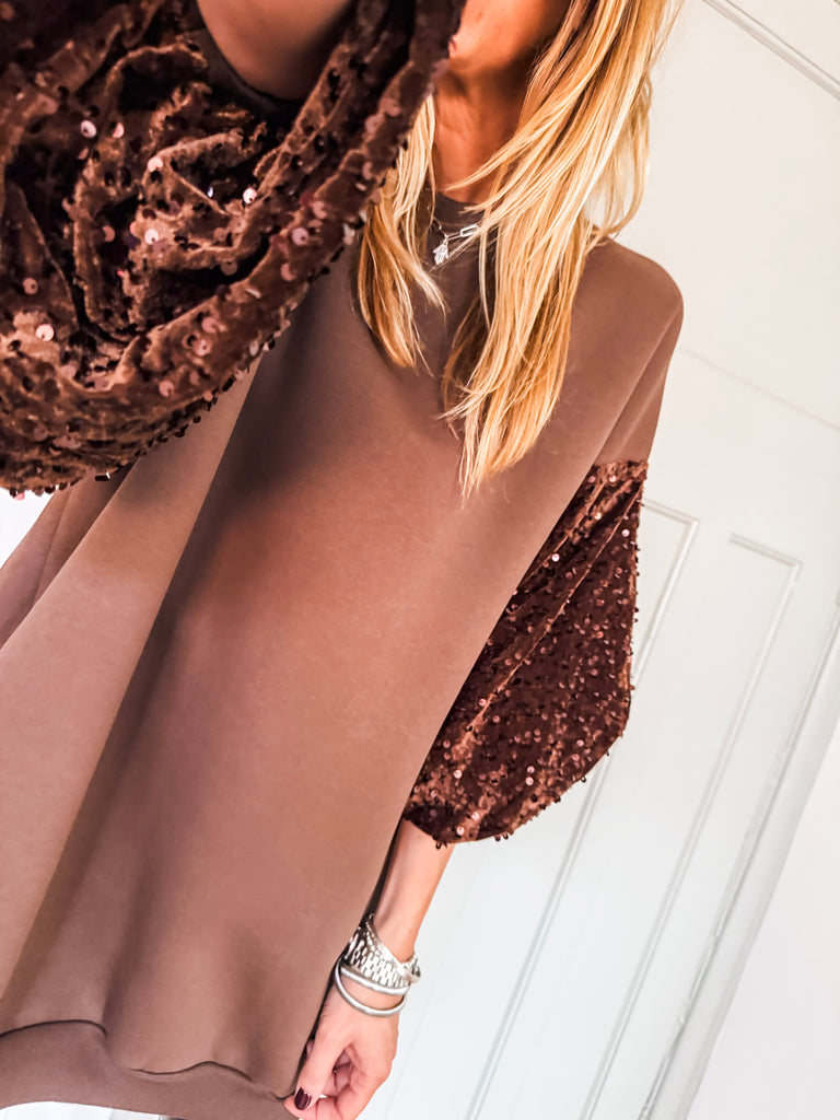 Turn heads in this oversized tunic sweatshirt—where laid-back comfort meets statement sparkle. Crafted from soft sweat fabric with sequin-detailed sleeves, it’s the perfect blend of cosy and bold. Effortlessly cool, whether worn solo or layered for impact.