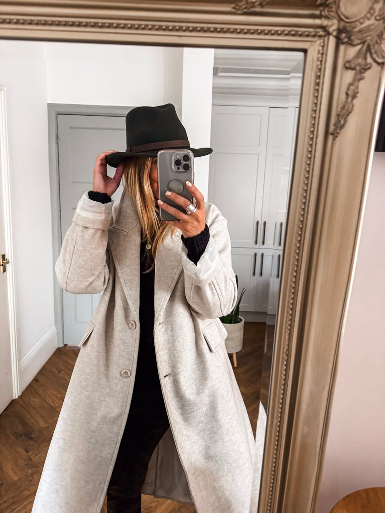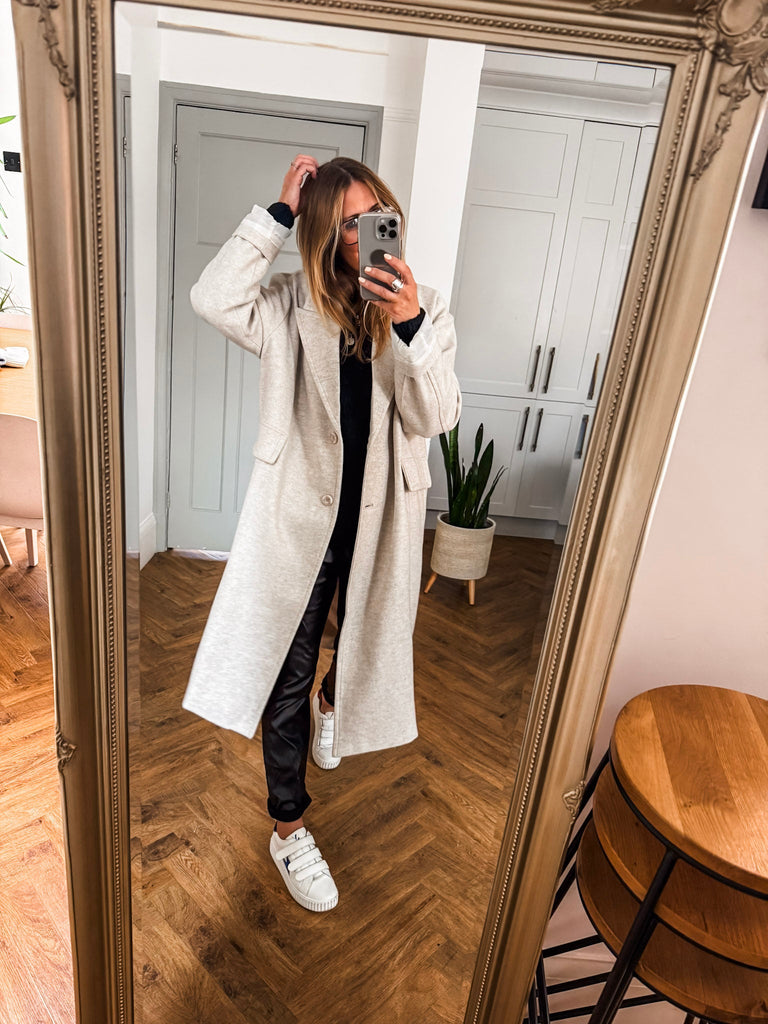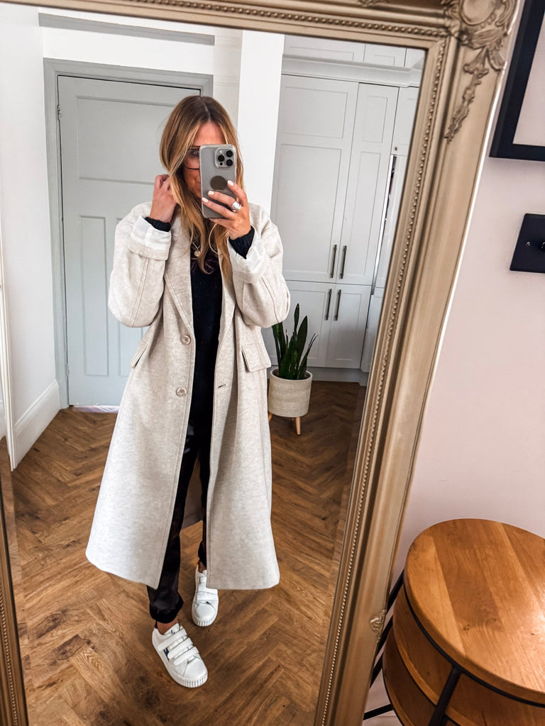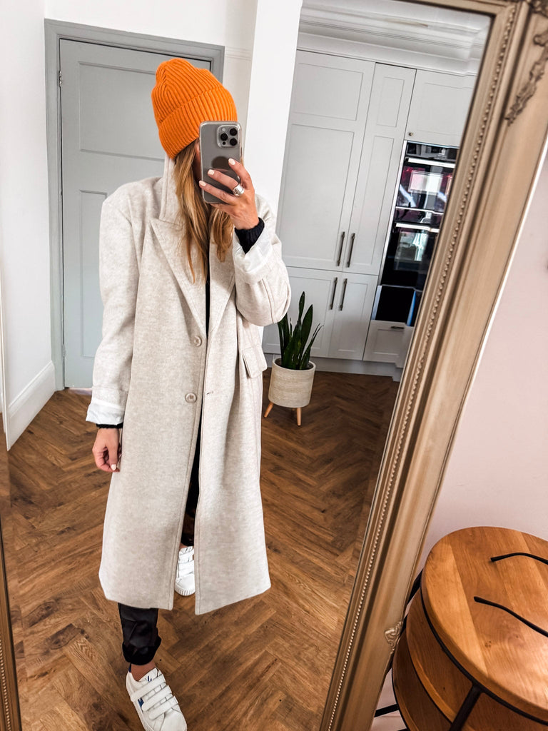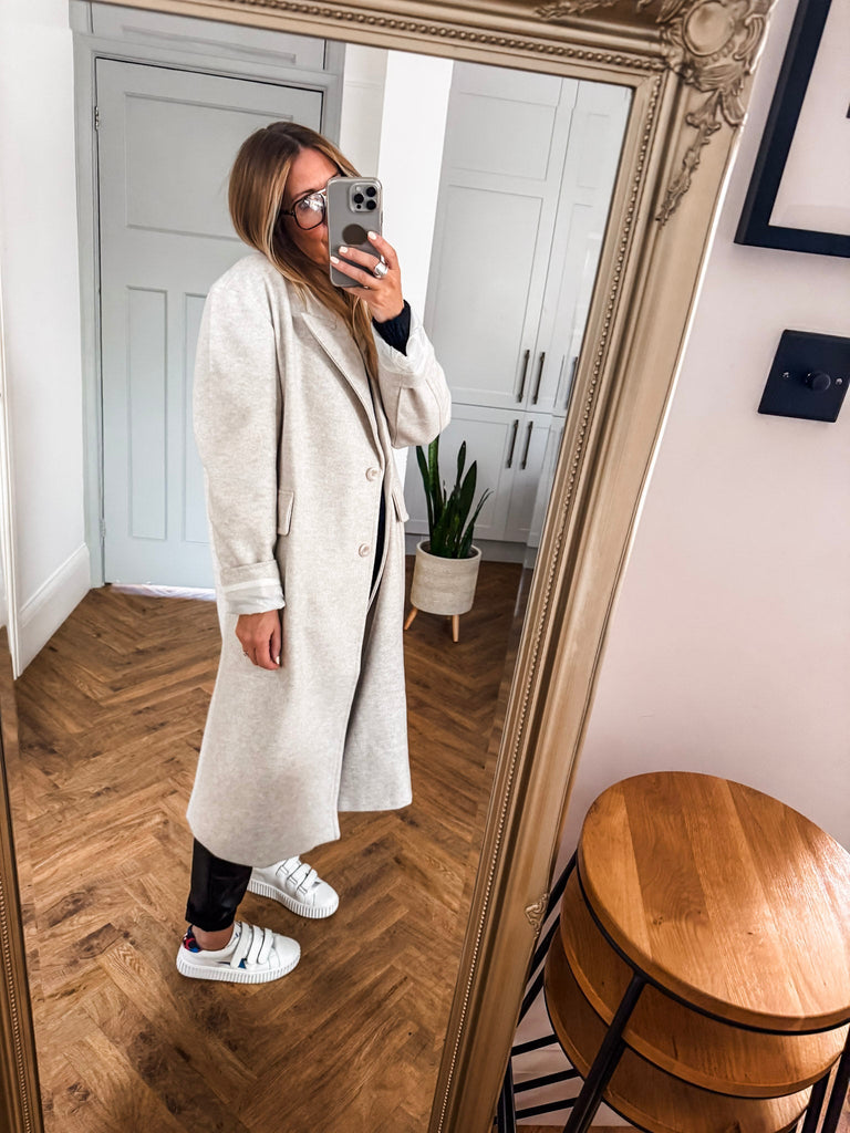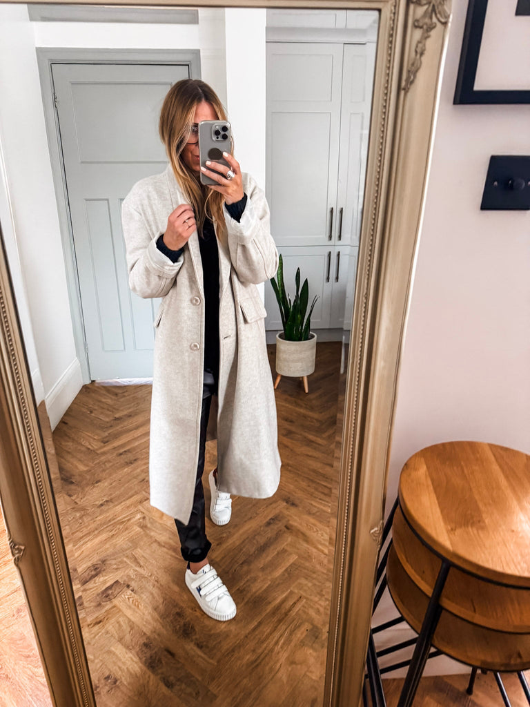 Style your look with our Wool Blend Overcoat —lightweight yet cozy, it’s perfect for cooler days. The extra-long silhouette and functional pockets add effortless style and utility. Stay chic and comfortable all season long in this must-have layer. Lightweight fabric, perfect for using as a layer over a cardigan or Jumper.